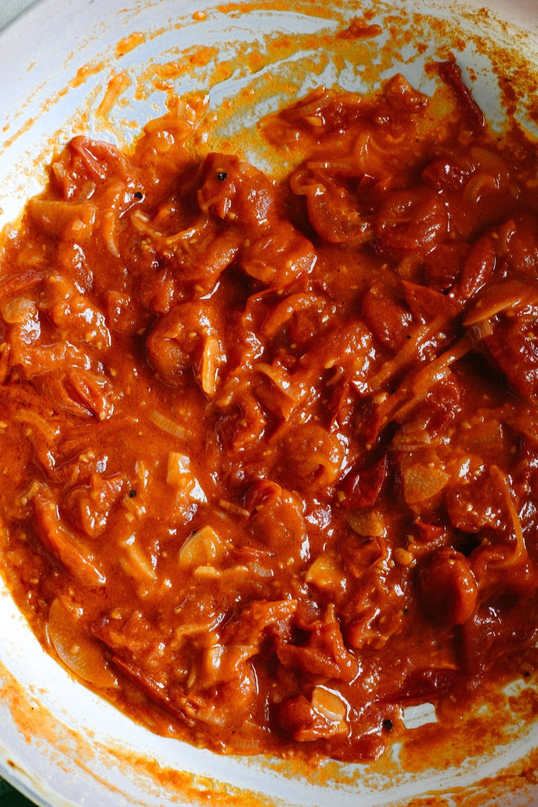 Keeping the heat low, continue to cook for 20 minutes until the tomatoes have started to break down – use the back of a spoon to help break them up.