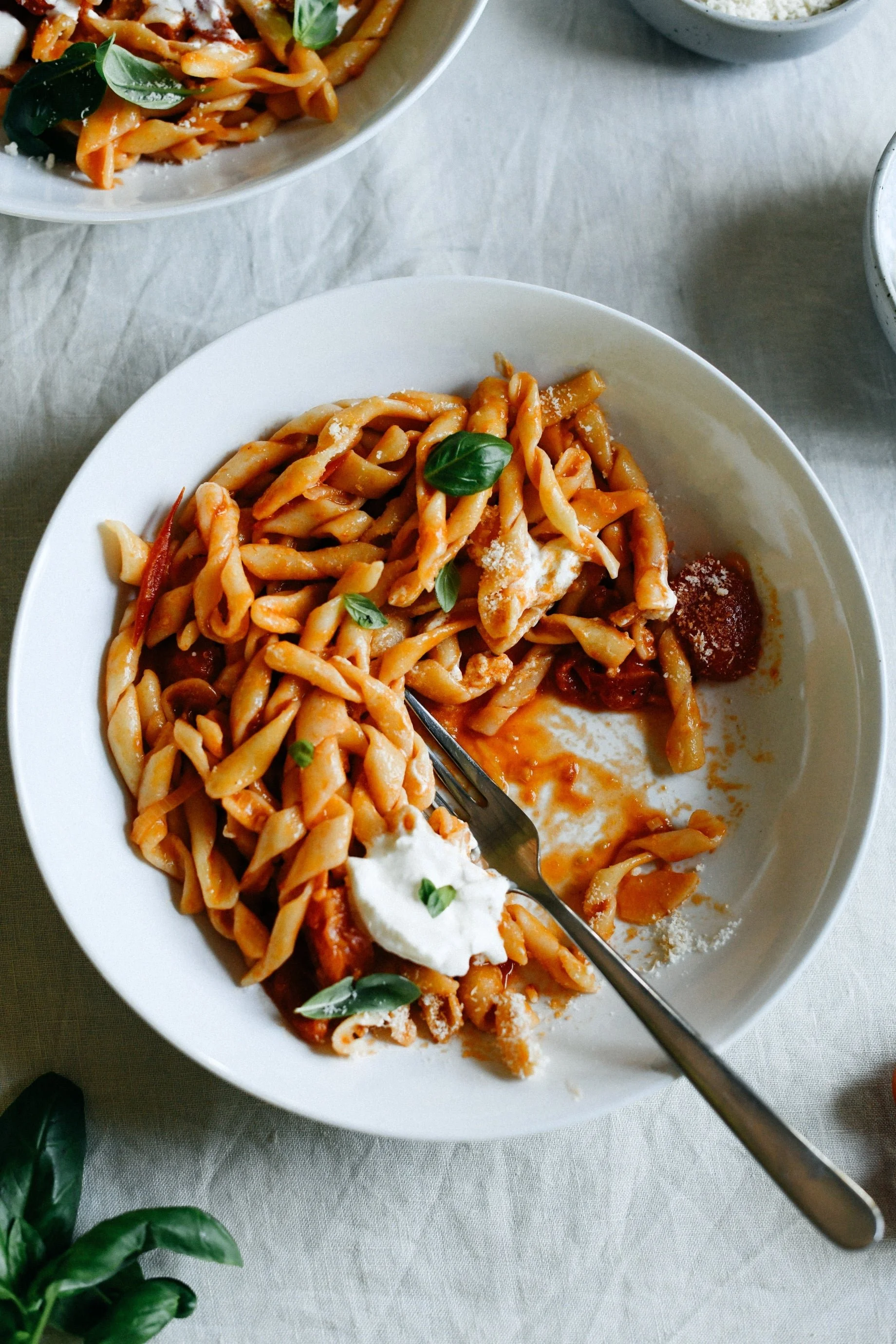 Serve topped with a dollop of burrata, fresh basil and a dusting of Parmigiano Reggiano.