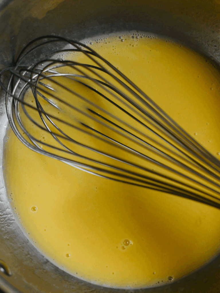 - Start incorporating a little bit of flour at a time, whisking vigorously until you have a thick custard-like consistency.