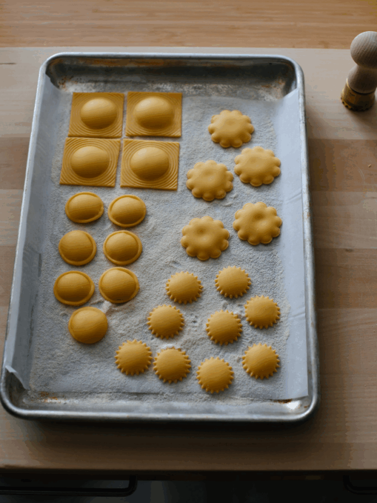 - Use a pastry cutter, or tagliapasta to cut out each ravioli in whatever shape you like.