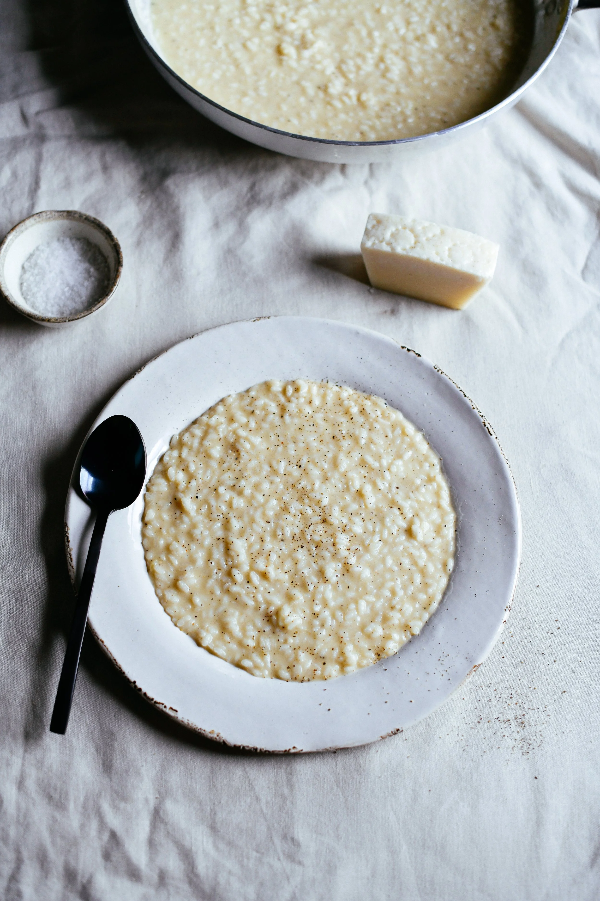 Cacio e pepe, but make it risotto. A classic Roman dish of cheese (cacio) and pepper (pepe) is super simple to make and requires only a few ingredients. This risotto uses water instead of stock to really let the Pecorino Romano flavour sing.