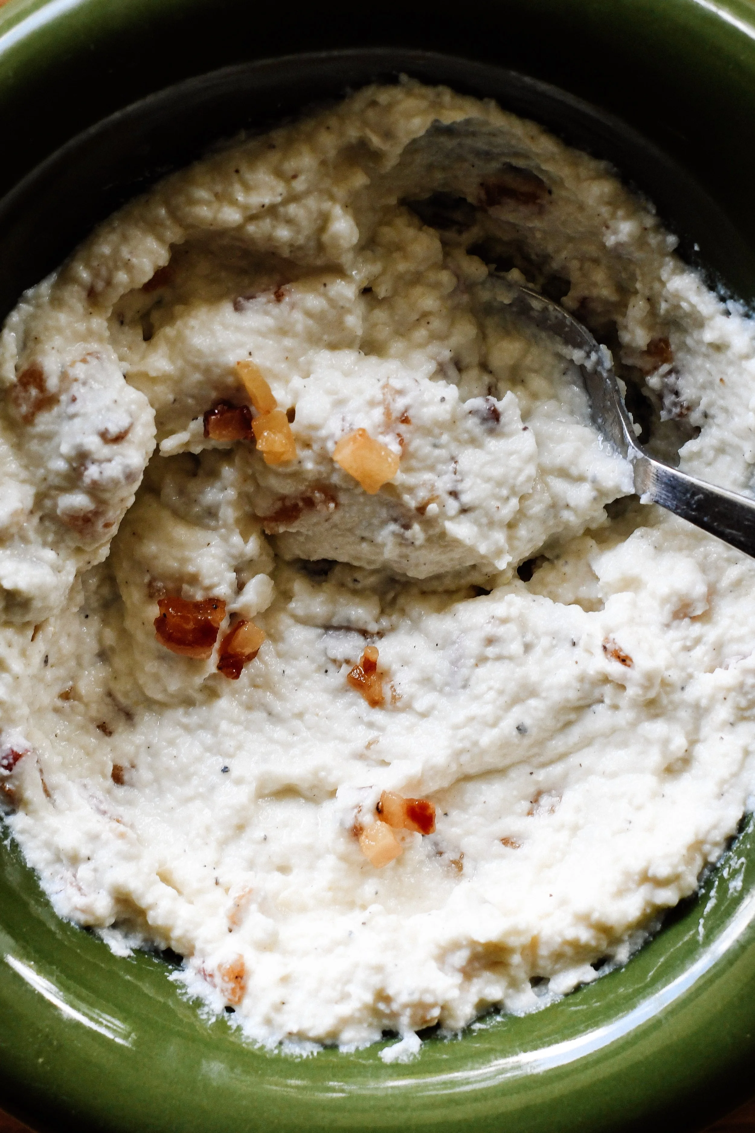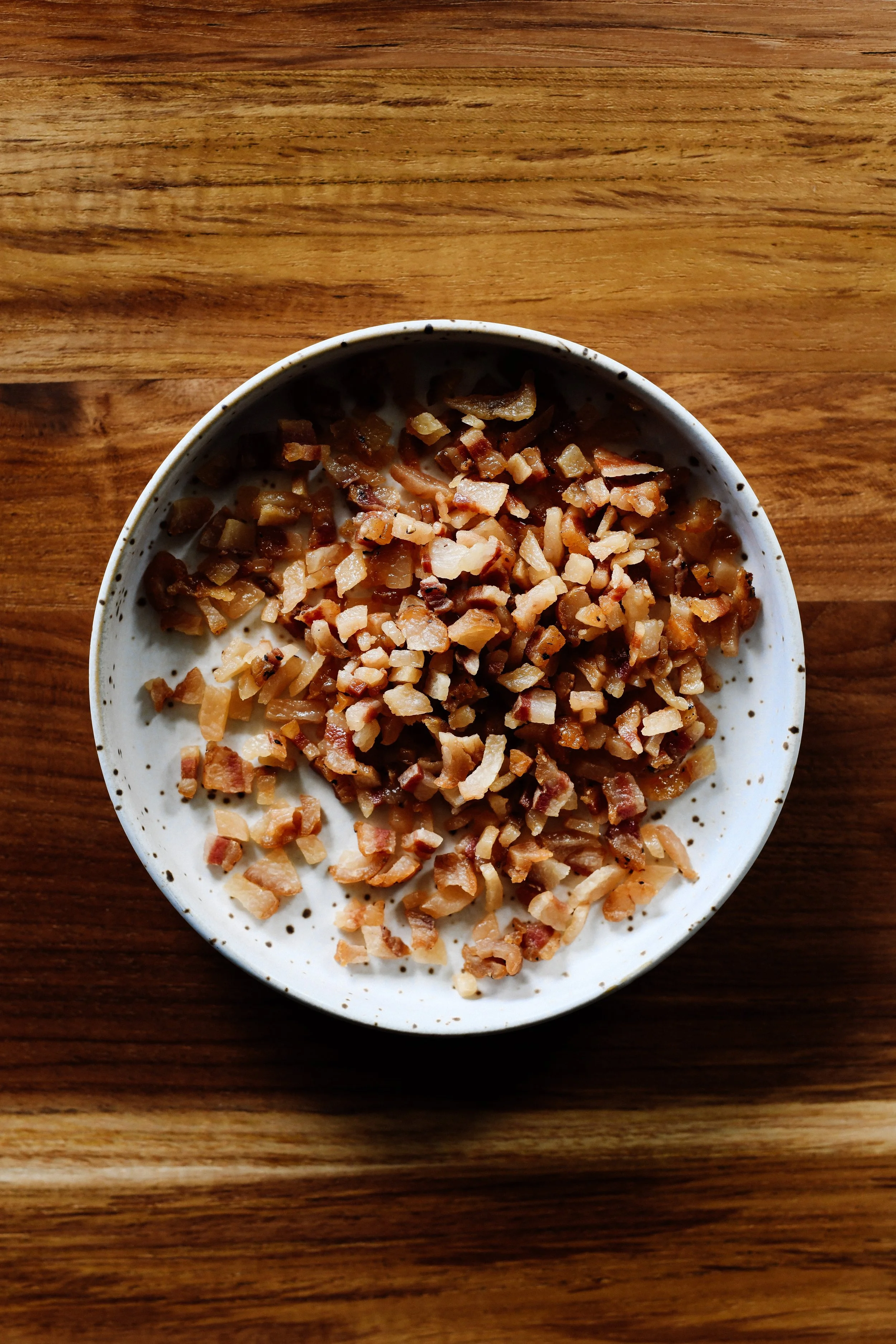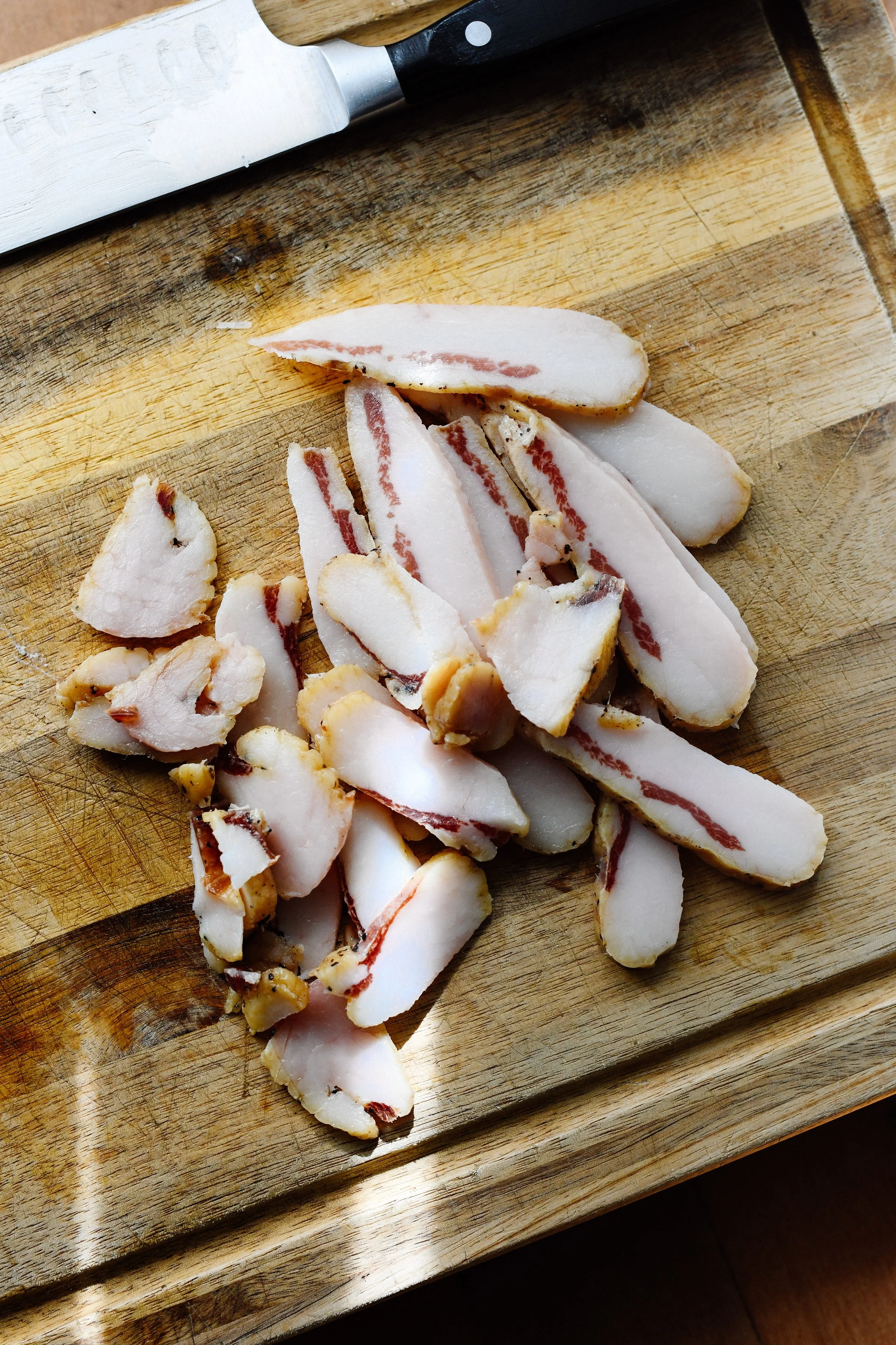 4. Once cool, fold the guanciale into the pecorino cream filling.