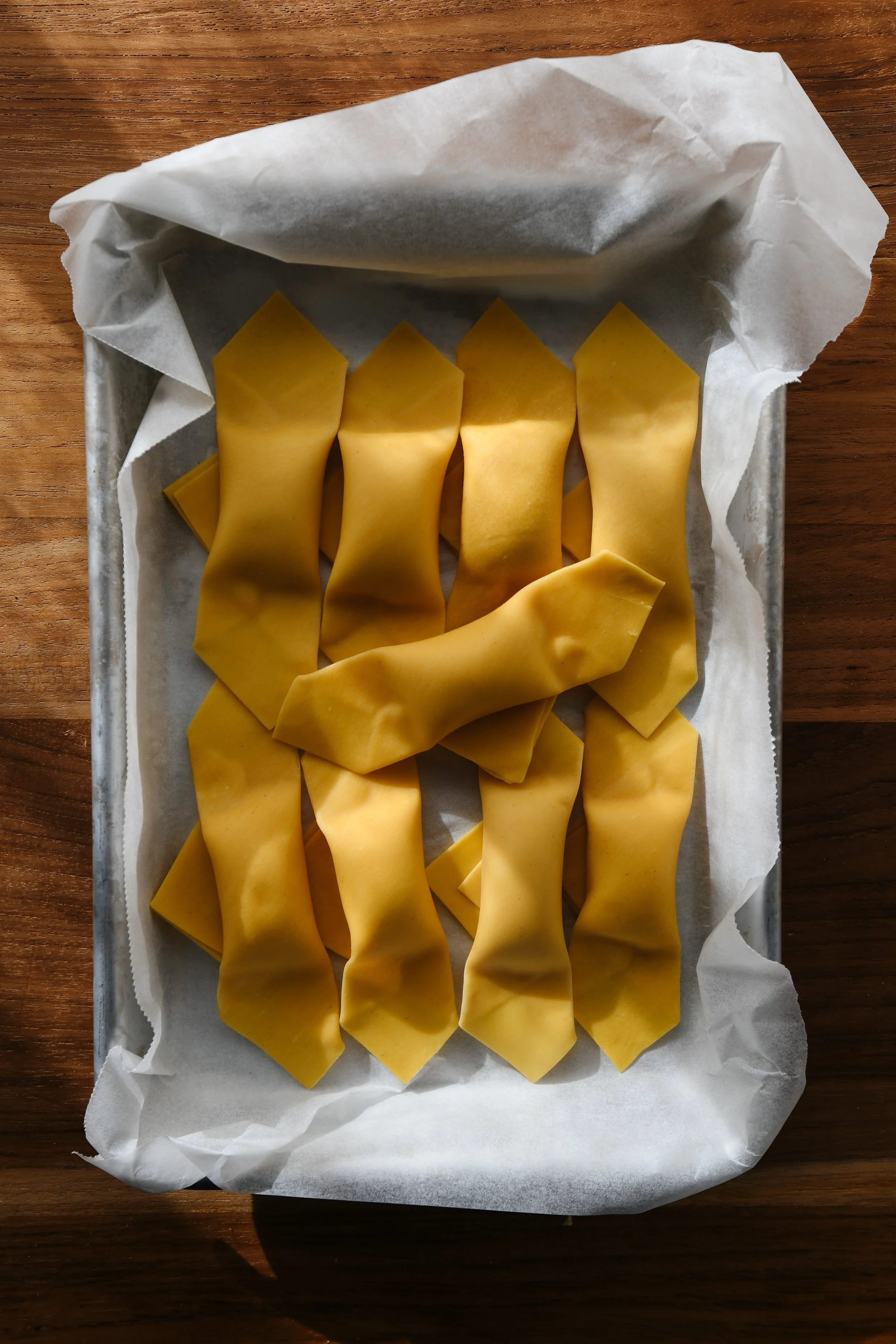 - Place each formed shape onto a clean tea towel or a baking sheet dusted with fine semolina and set aside.