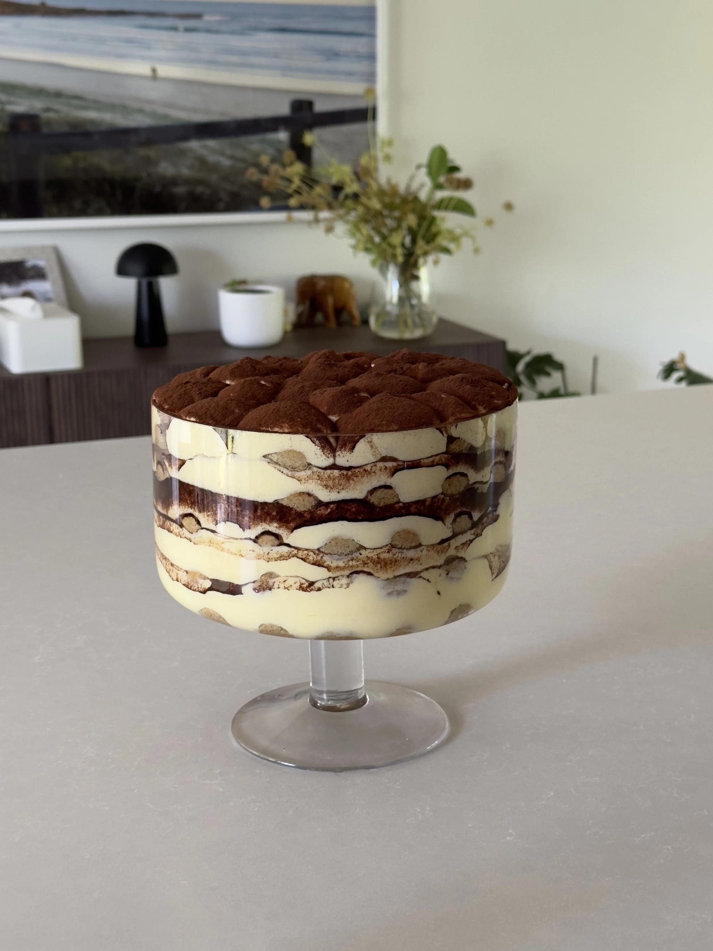 Assembling this beast of a tiramisu in a trifle dish is not only perfect for feeding a large crowd (so many serves, so many possibilities!!), but if you do have a clear trifle dish, the layers looks pretty spectacular – if I may say so. The most important thing to note is to allow enough time for the tiramisu to set before serving, to ensure the best result.