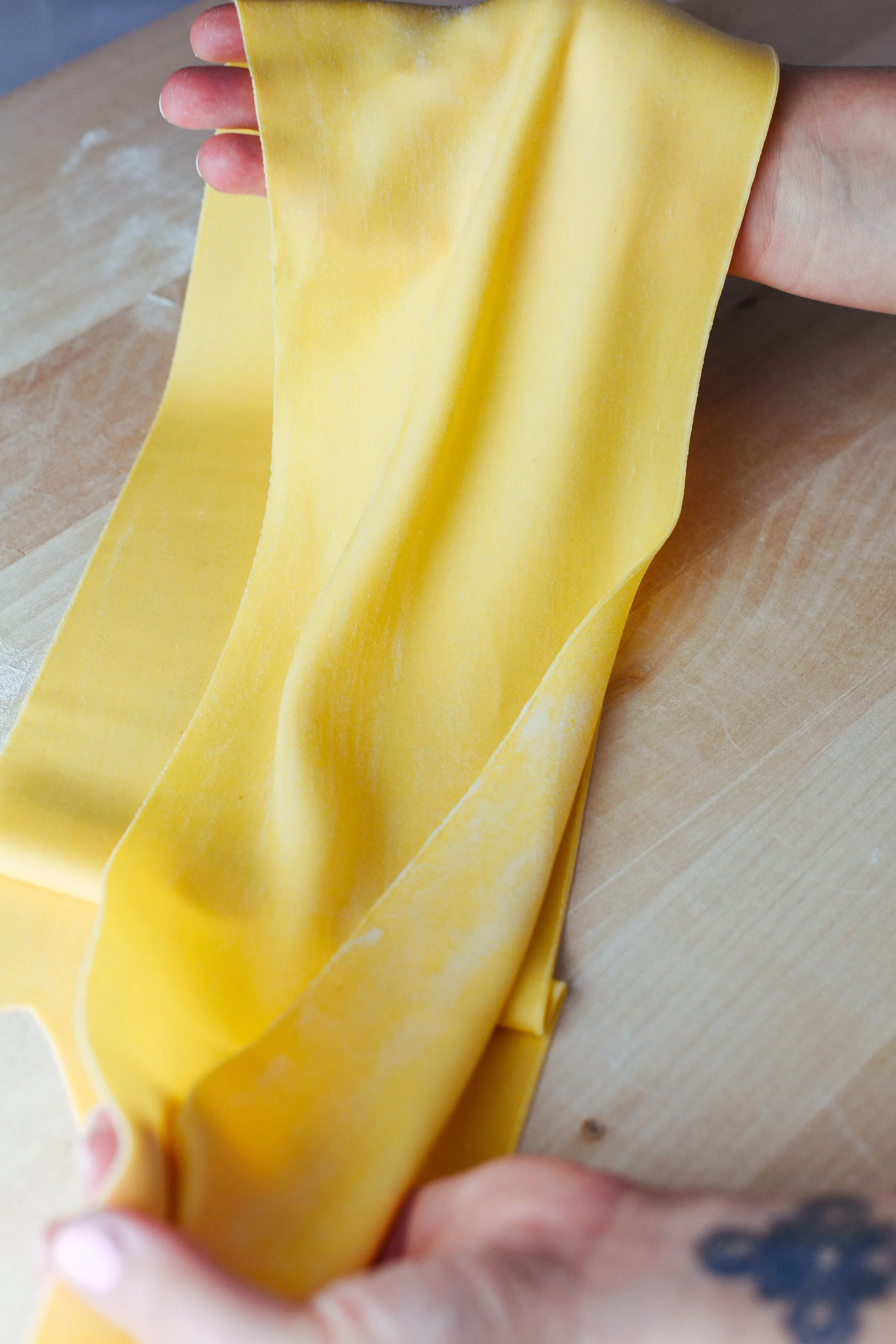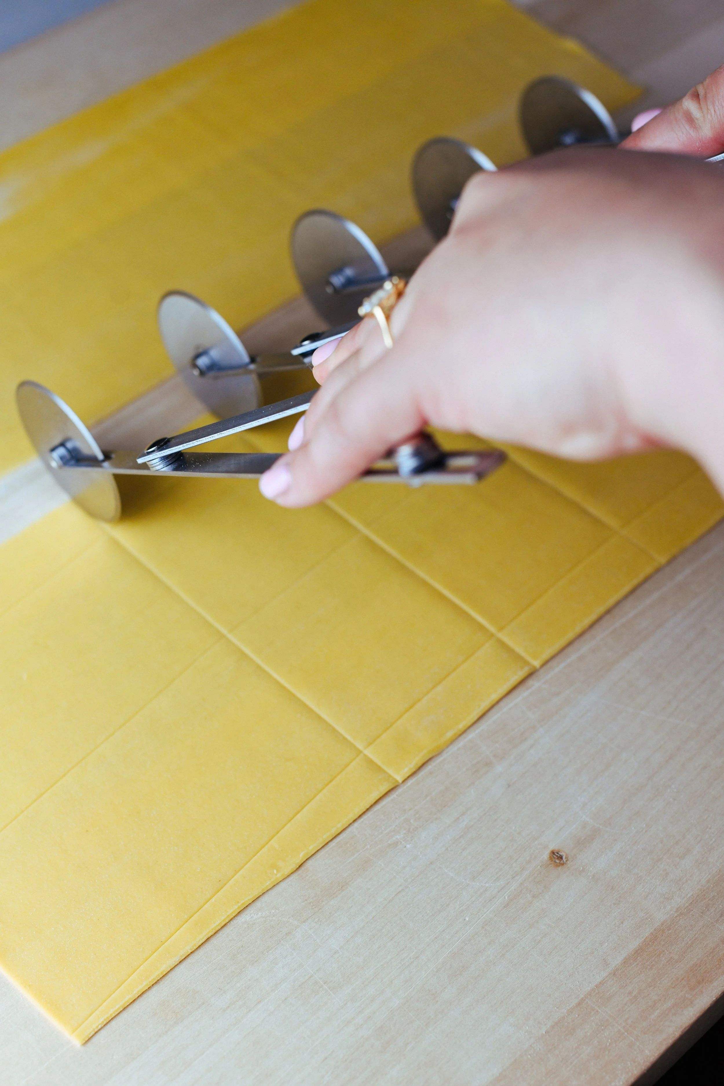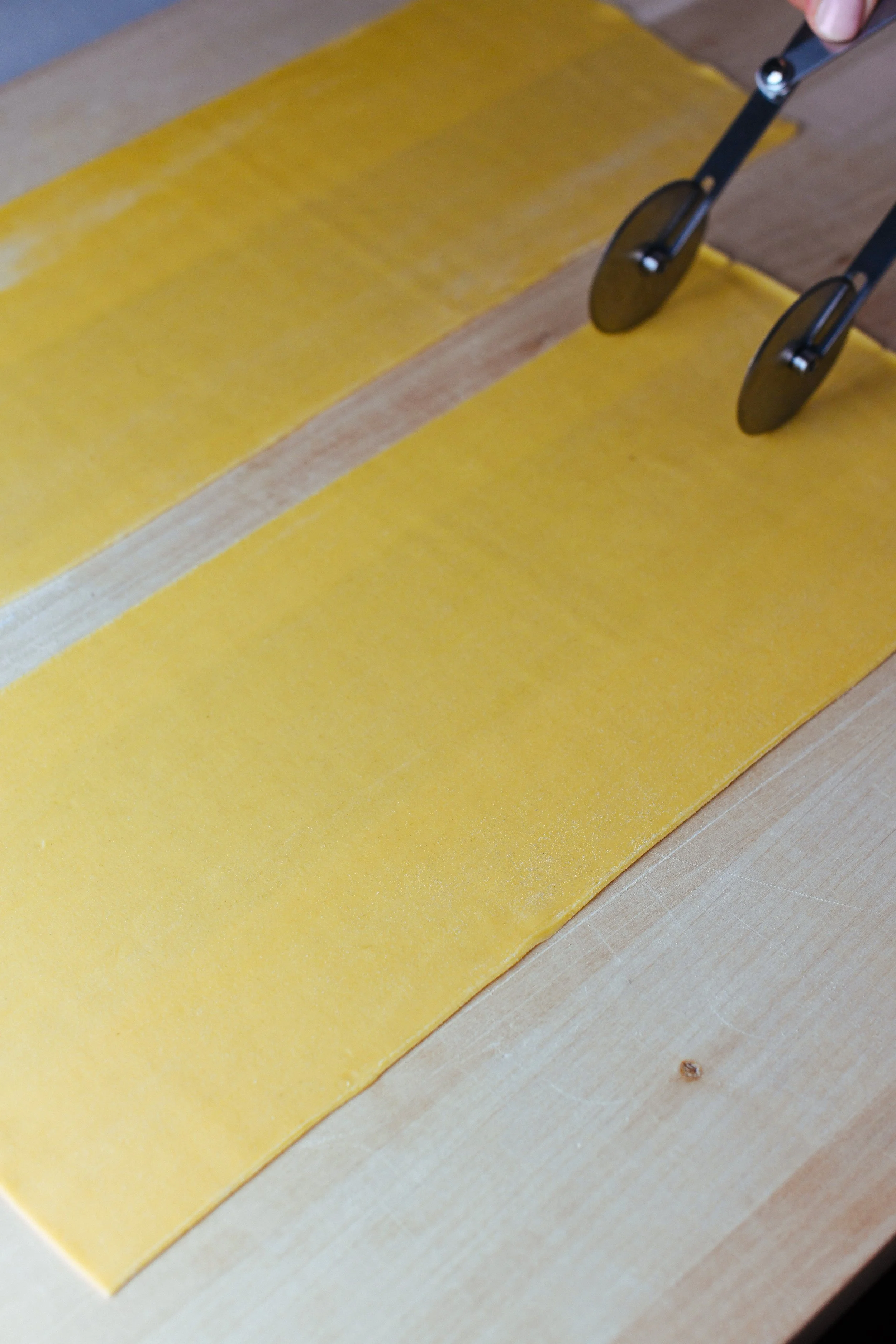 Continue with the rest of the dough, using as much of the cuttings/pasta sheet scraps as possible to reduce any waste