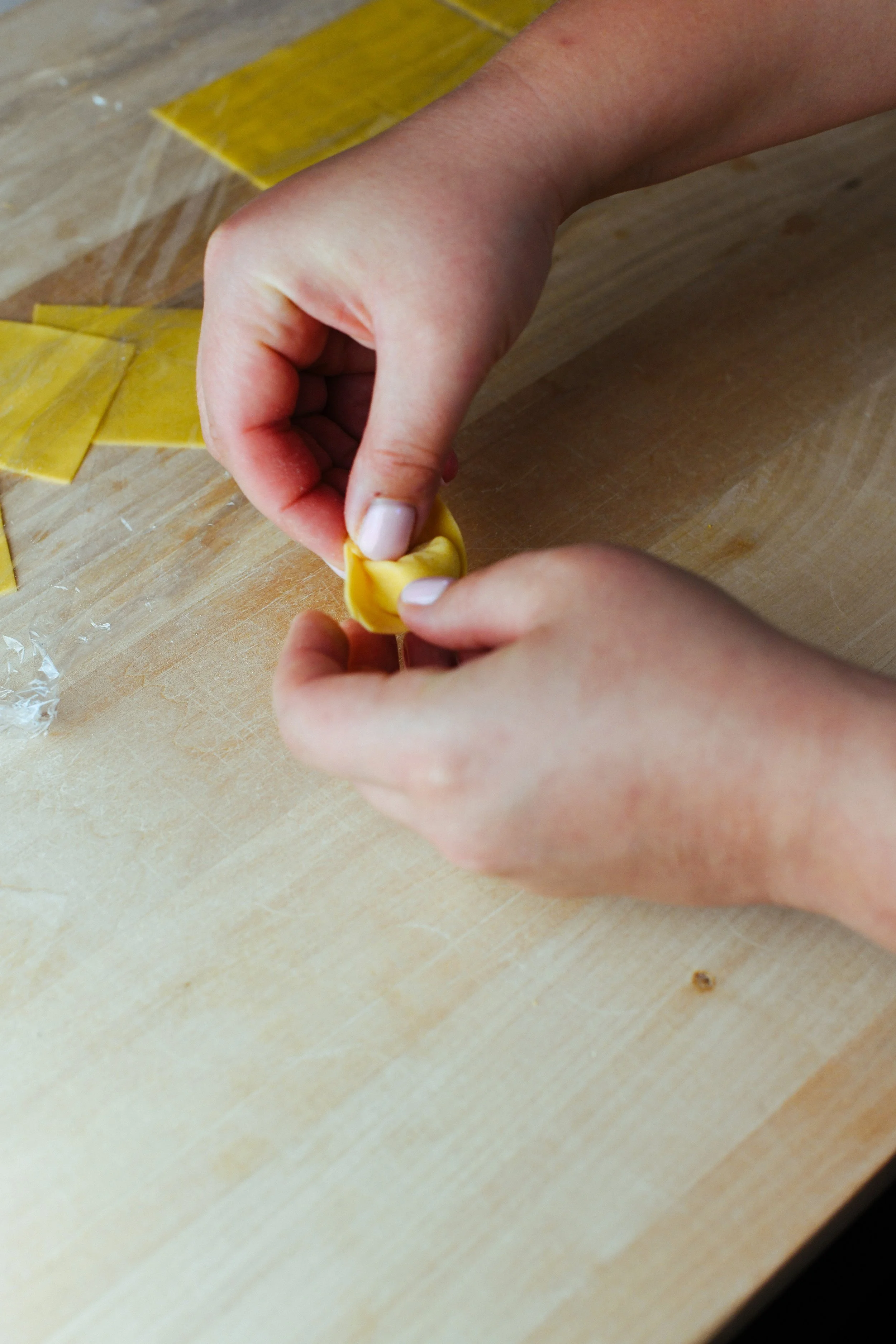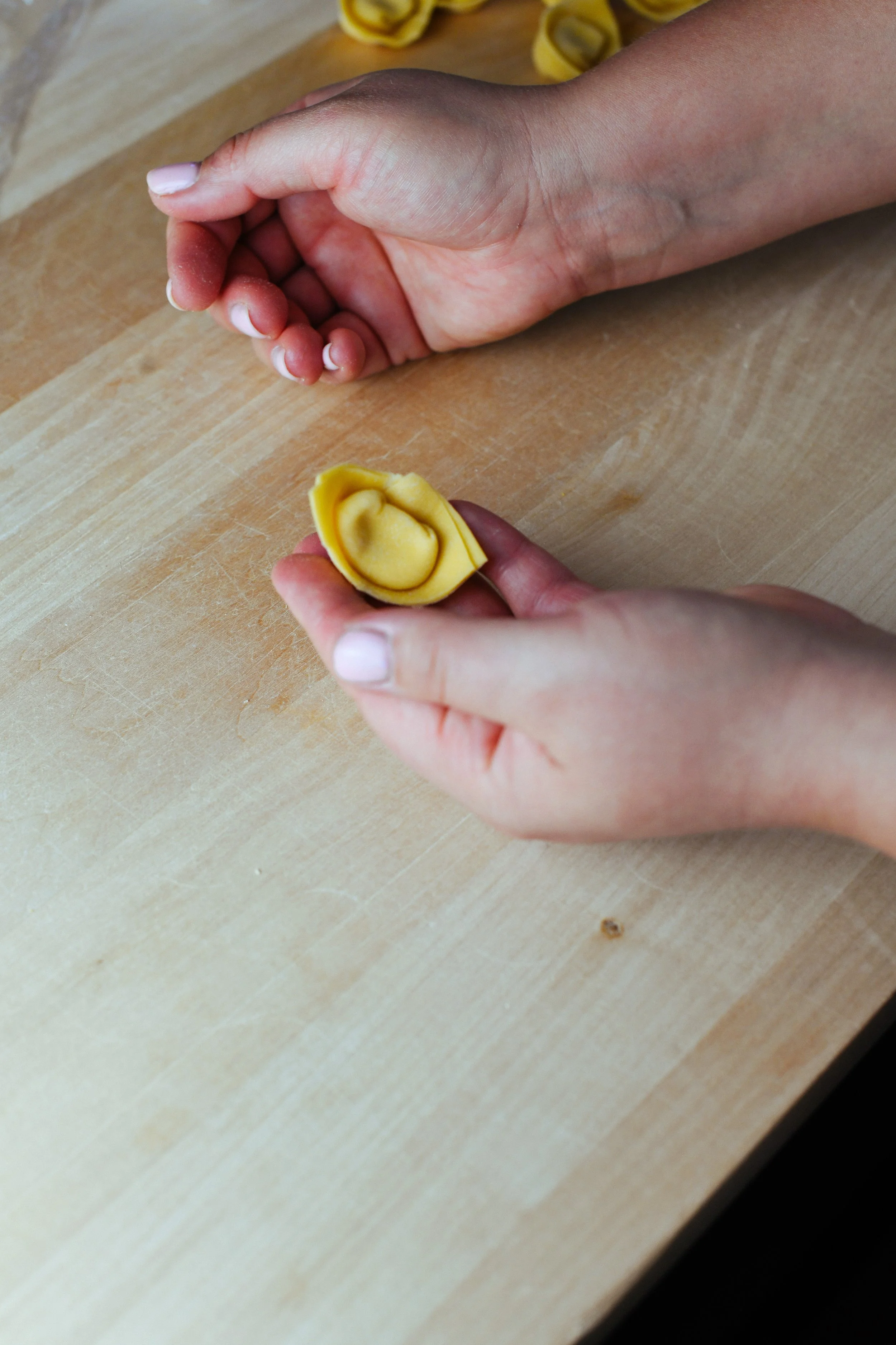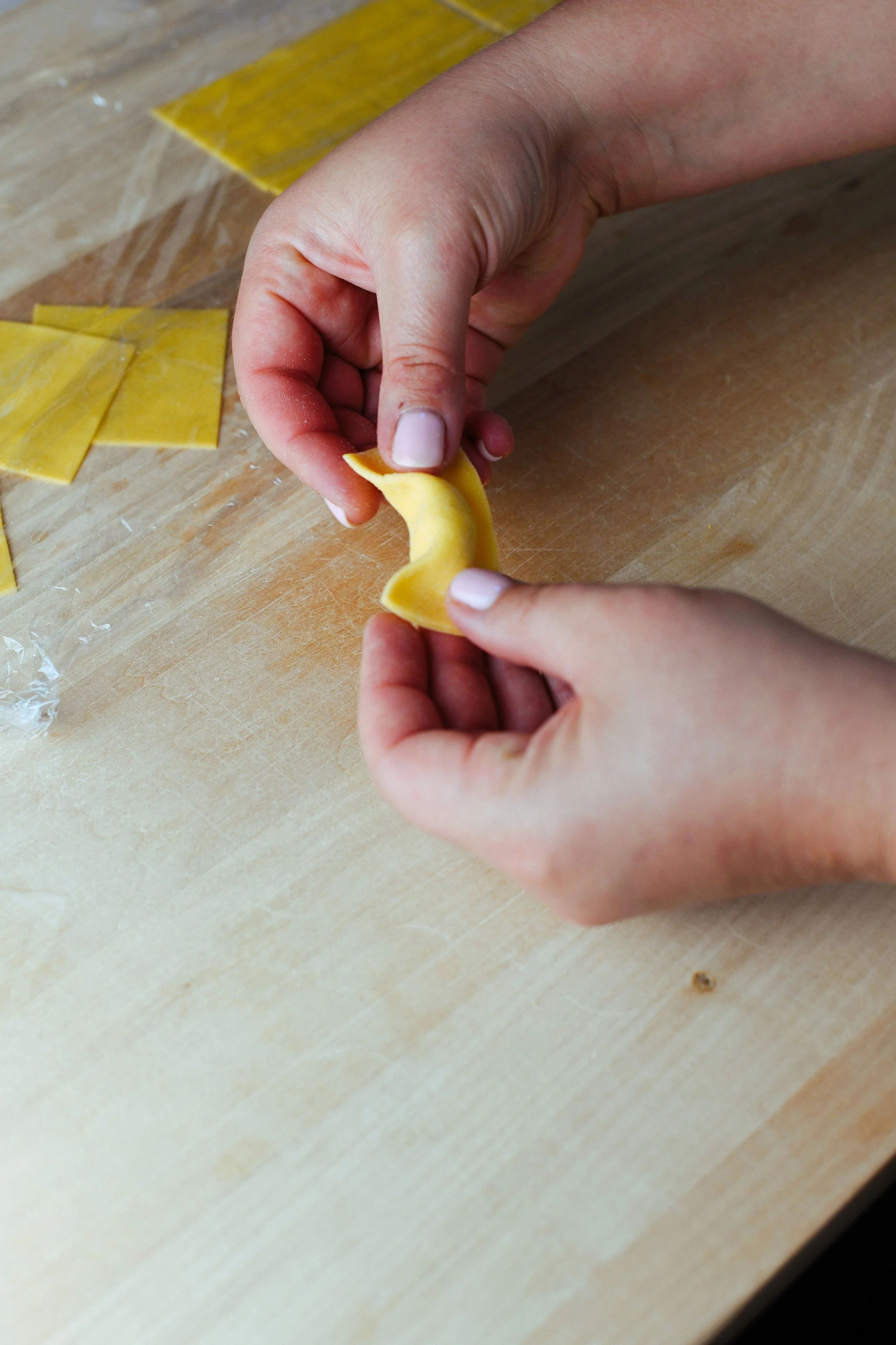 Place each cappellacci on a baking tray lined with a clean tea towel, or dusted with fine semolina