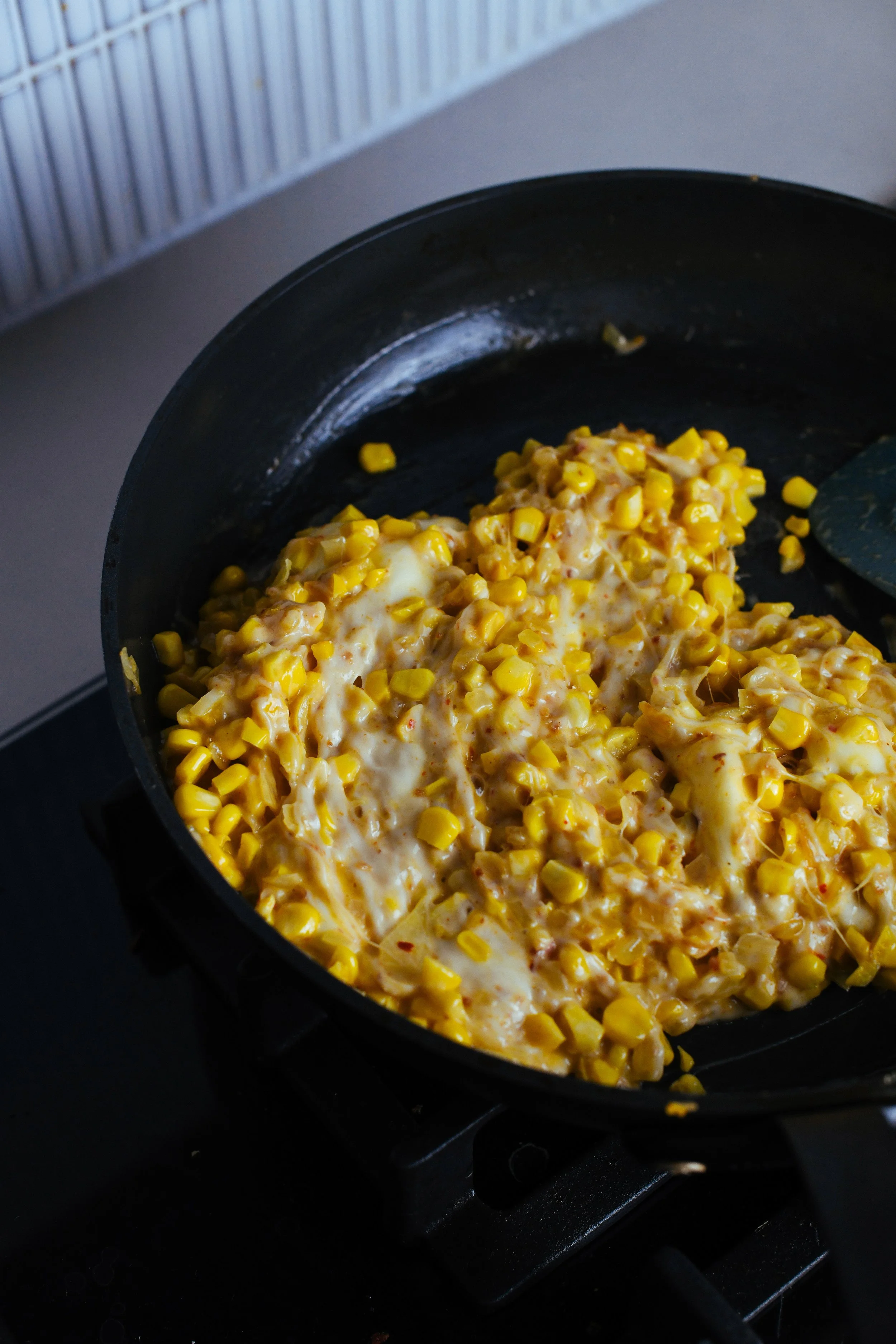 While still hot, add the cheesy corn mix to a blender and blend until smooth.