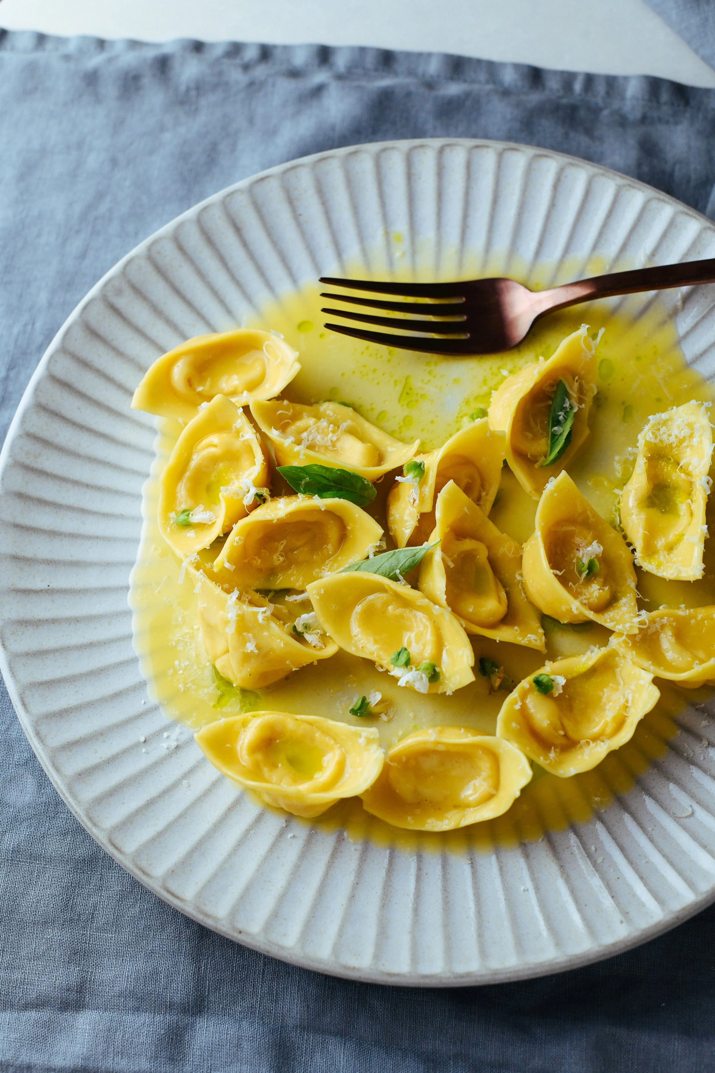 Gently whirl and toss to coat all of the cappellacci in the sauce, adding a squeeze of lemon to taste.