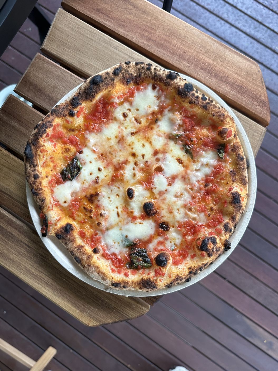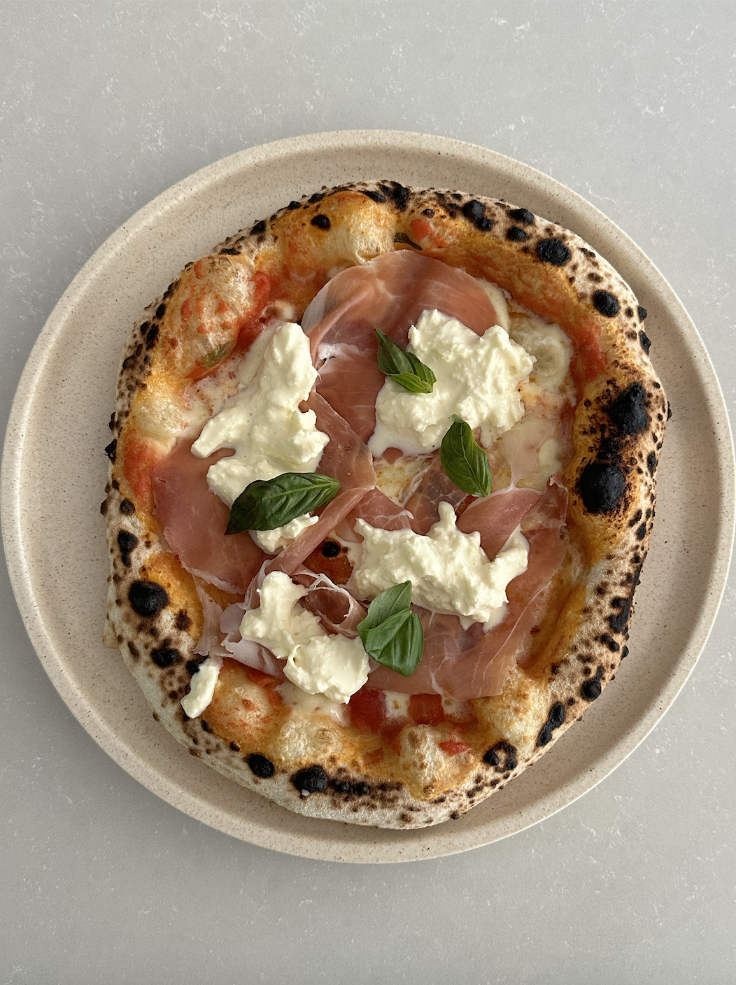I wanted to create a dough that wasn’t too hydrated (often more difficult to work with from a practical sense), but developed enough airiness in the crust – and I’m happy to report I think I’ve done just that. This dough is on the chewier side with a soft, puffed up crust. Leoparding can be achieved by allowing for a good final proof of the dough (once taken out of the fridge), being careful not to lose air in the crust when shaping, and by cooking in a hot enough oven.