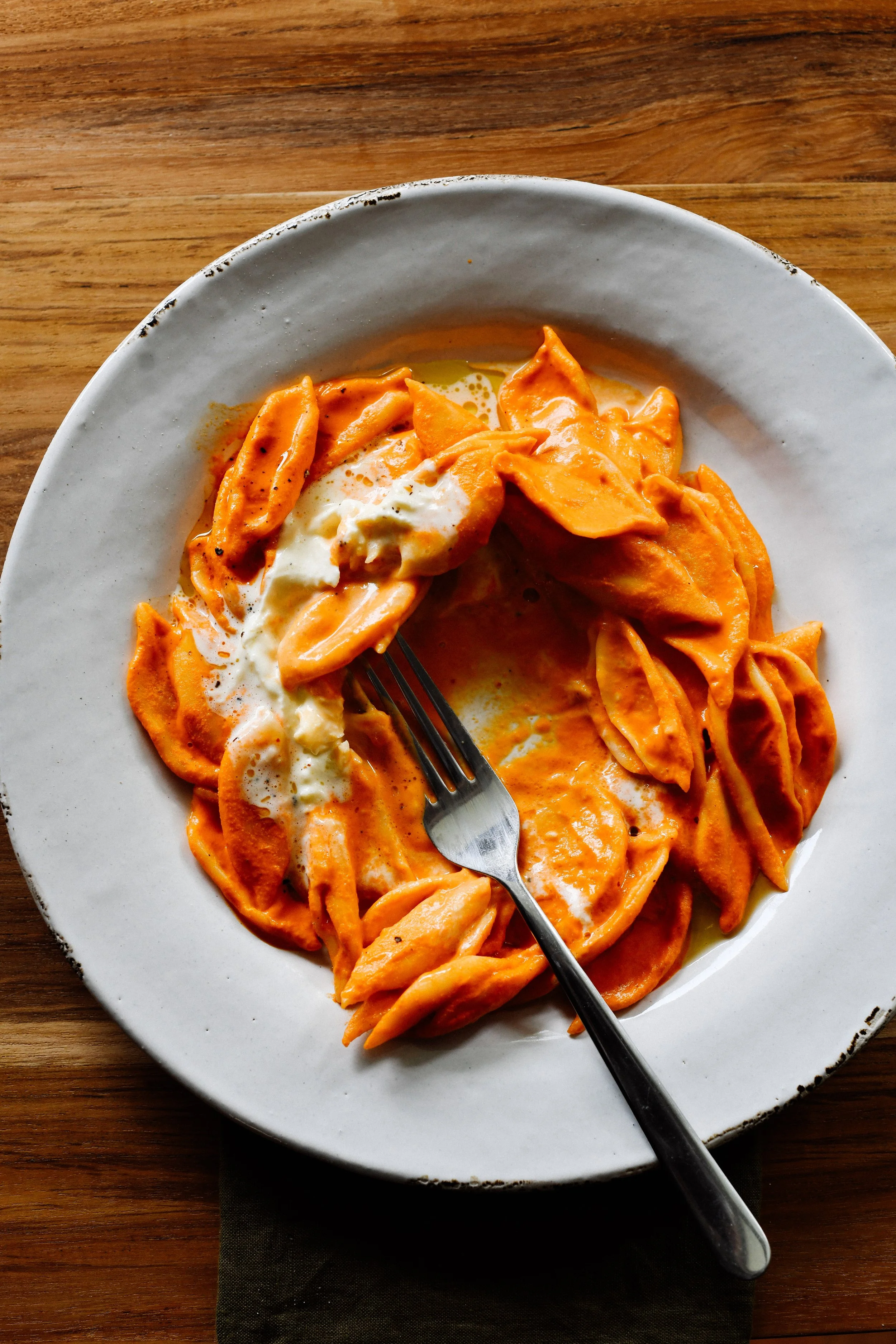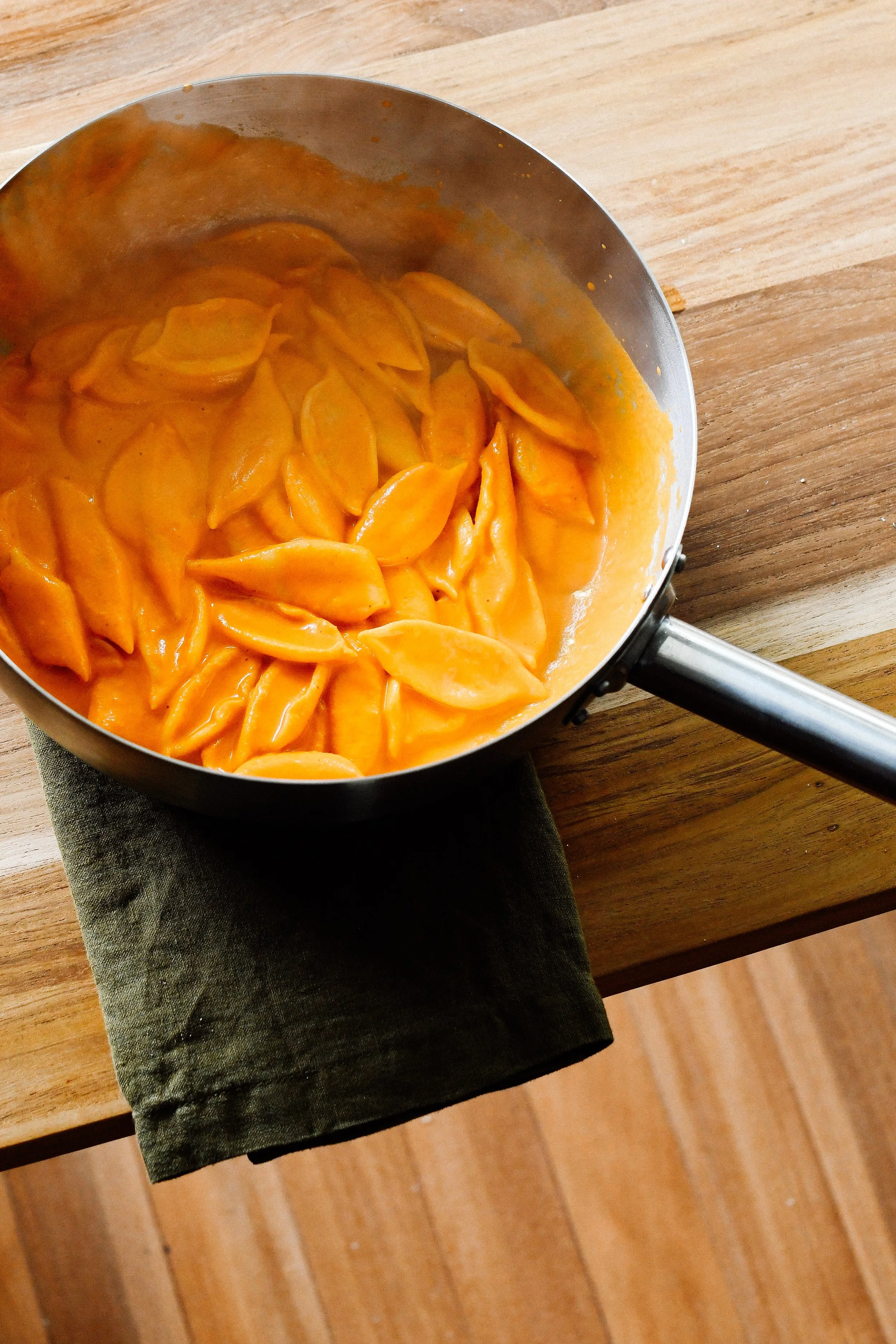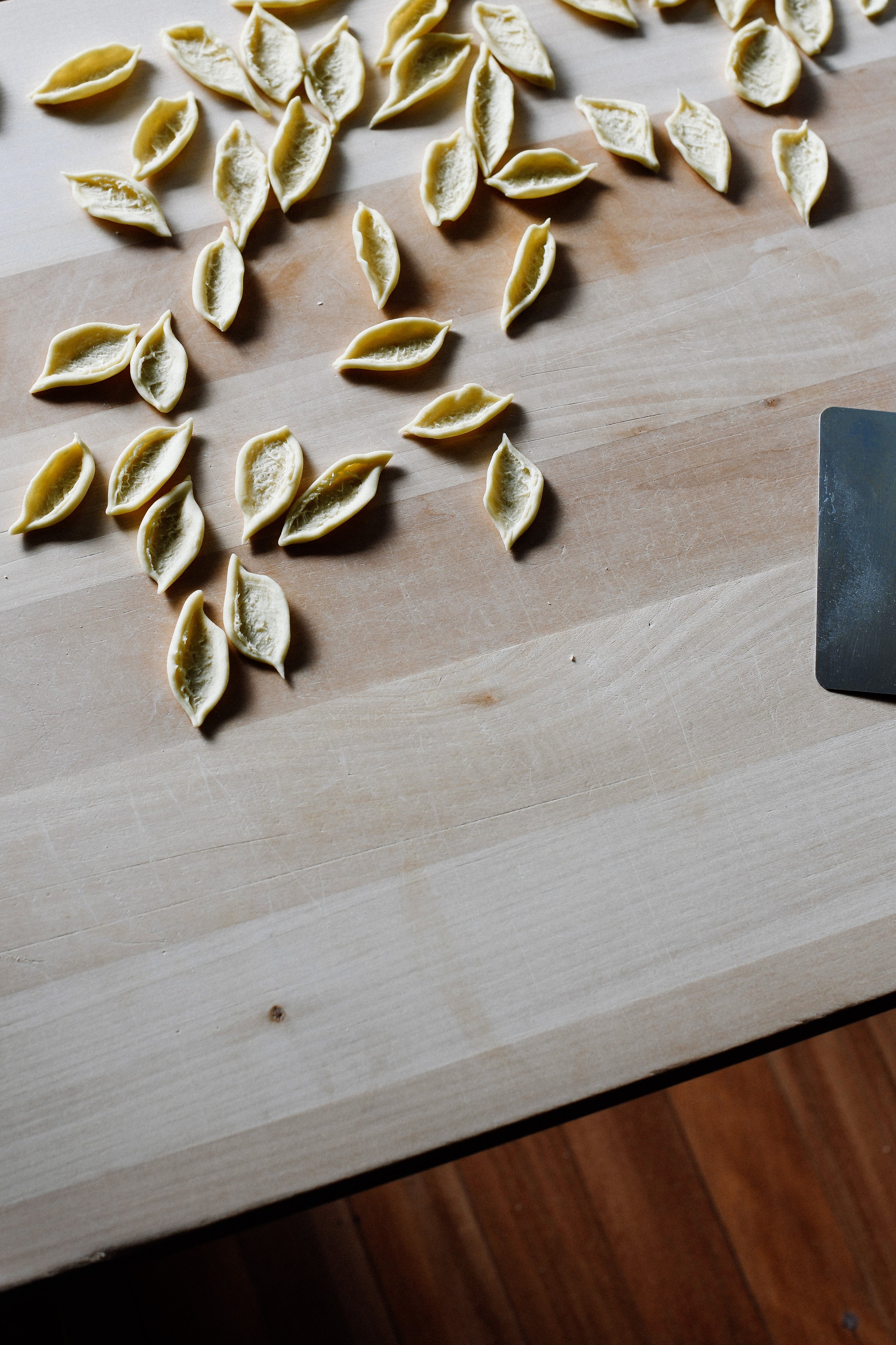 Drop the foglie d’ulivo into the boiling water and cook for 2-3 minutes, until al dente. Check that they’re cooked to your liking.