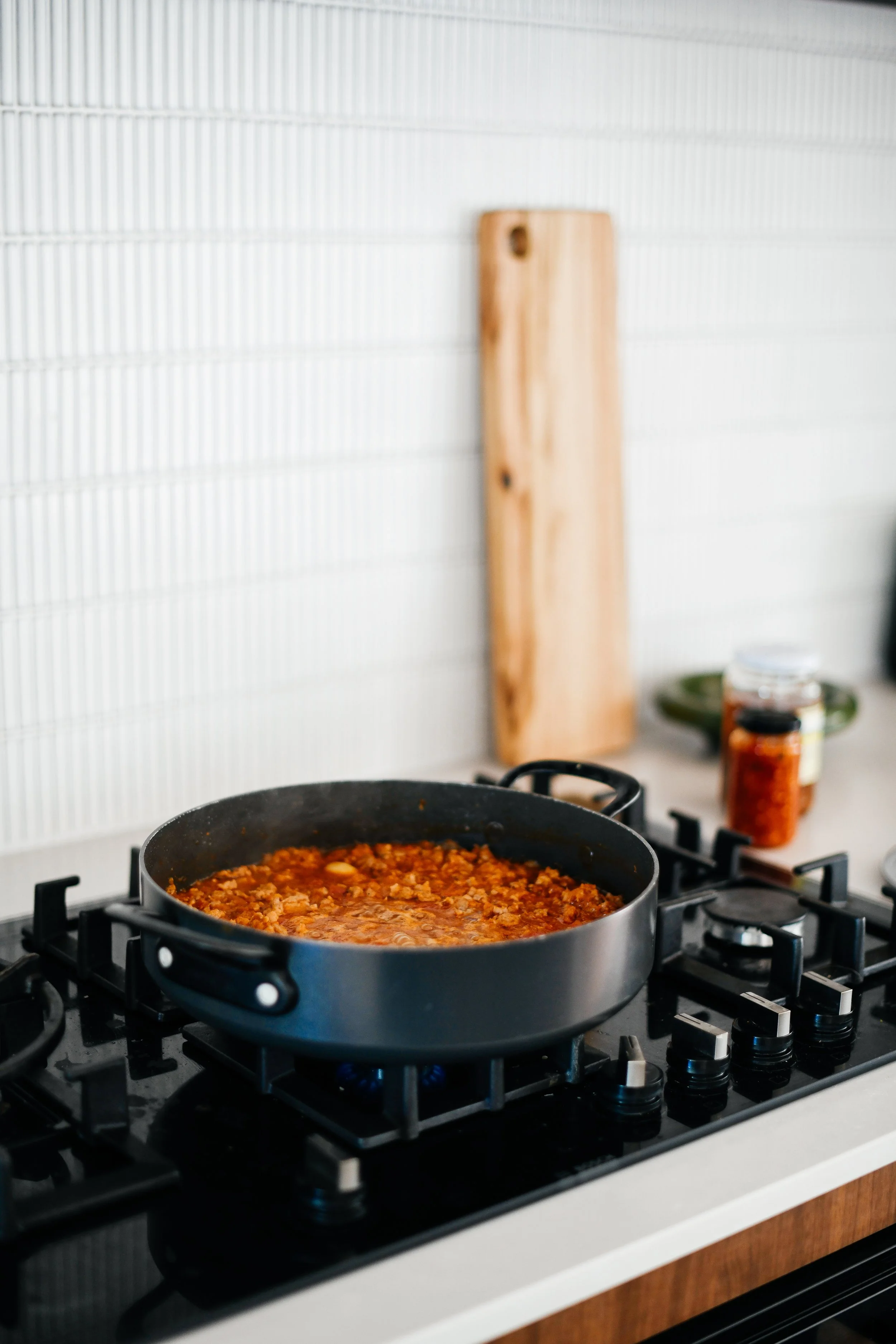 Sun-dried tomatoes, chillis, fresh Roma tomatoes, white wine and stock make the base of this ragu, resulting in a light and spicy sauce that feels fresh and delicate all at the same time.