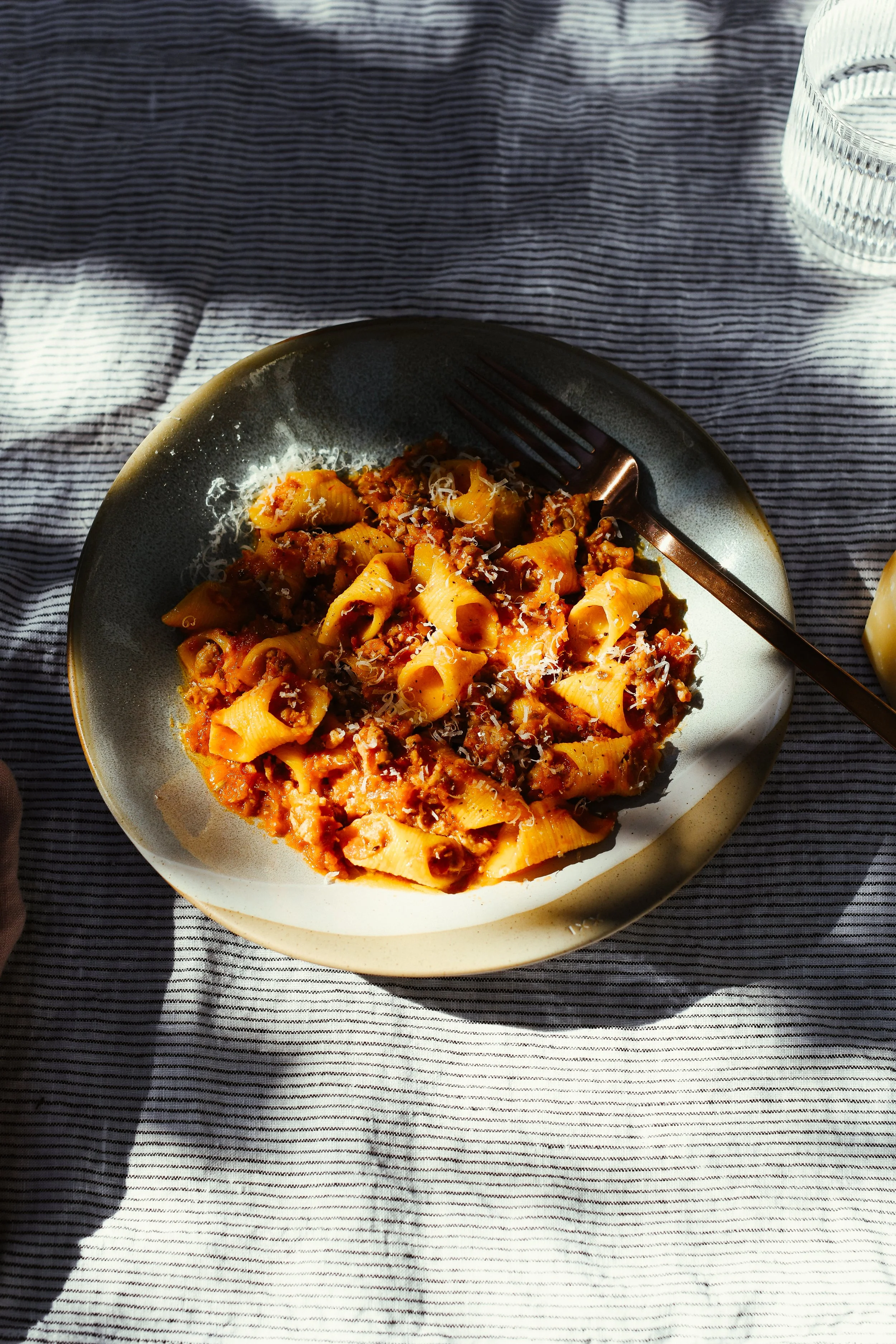 What I love about using sausage meat in a ragu is that you can quickly pack a punch of flavour by using a good quality sausages fragranced with herbs/fennel/you name it, and build on that with all of the wonderful extras in the sauce. I tend to go for an Italian-style sausage and add extra fennel seeds to really bring the flavour out.