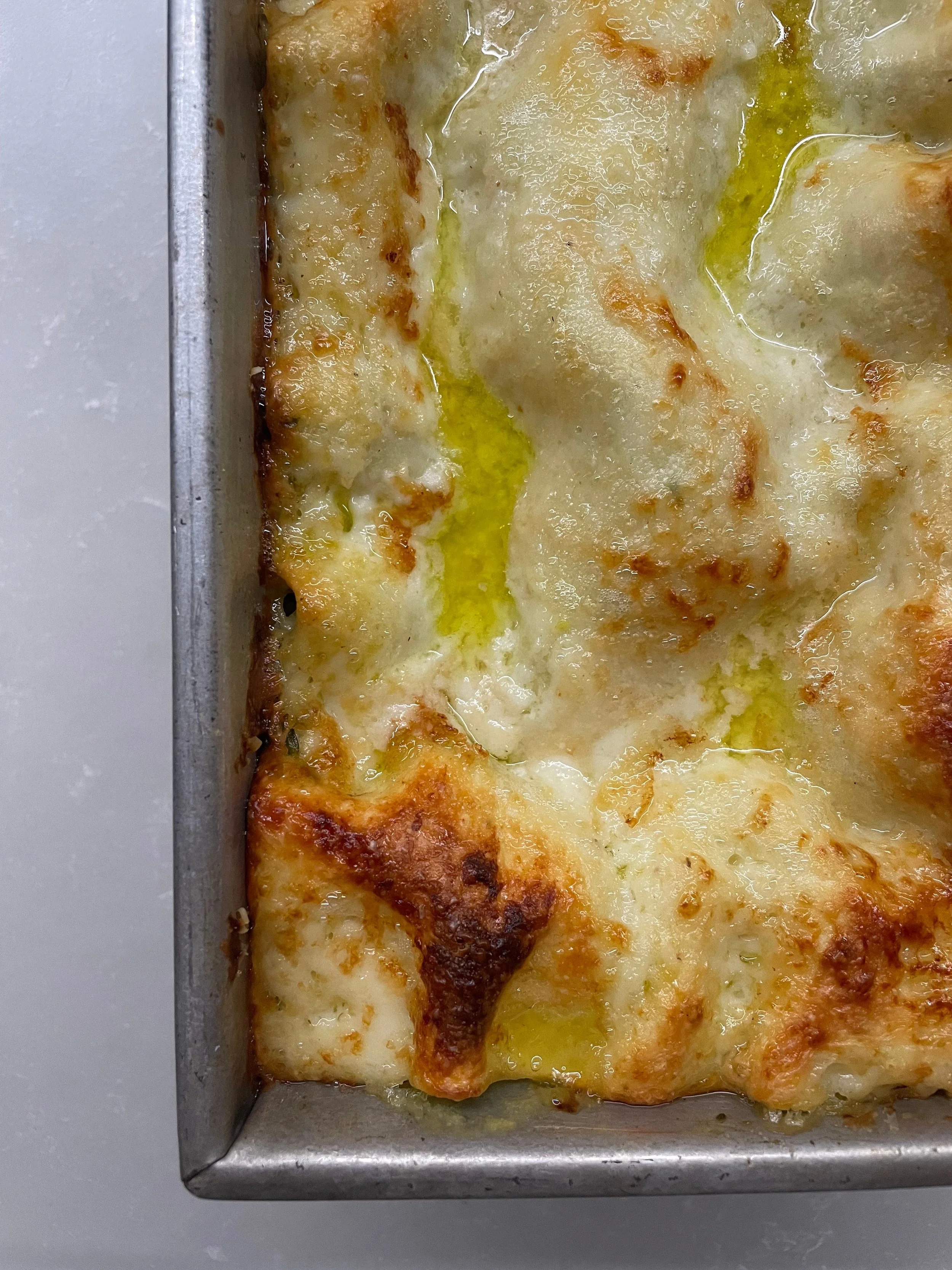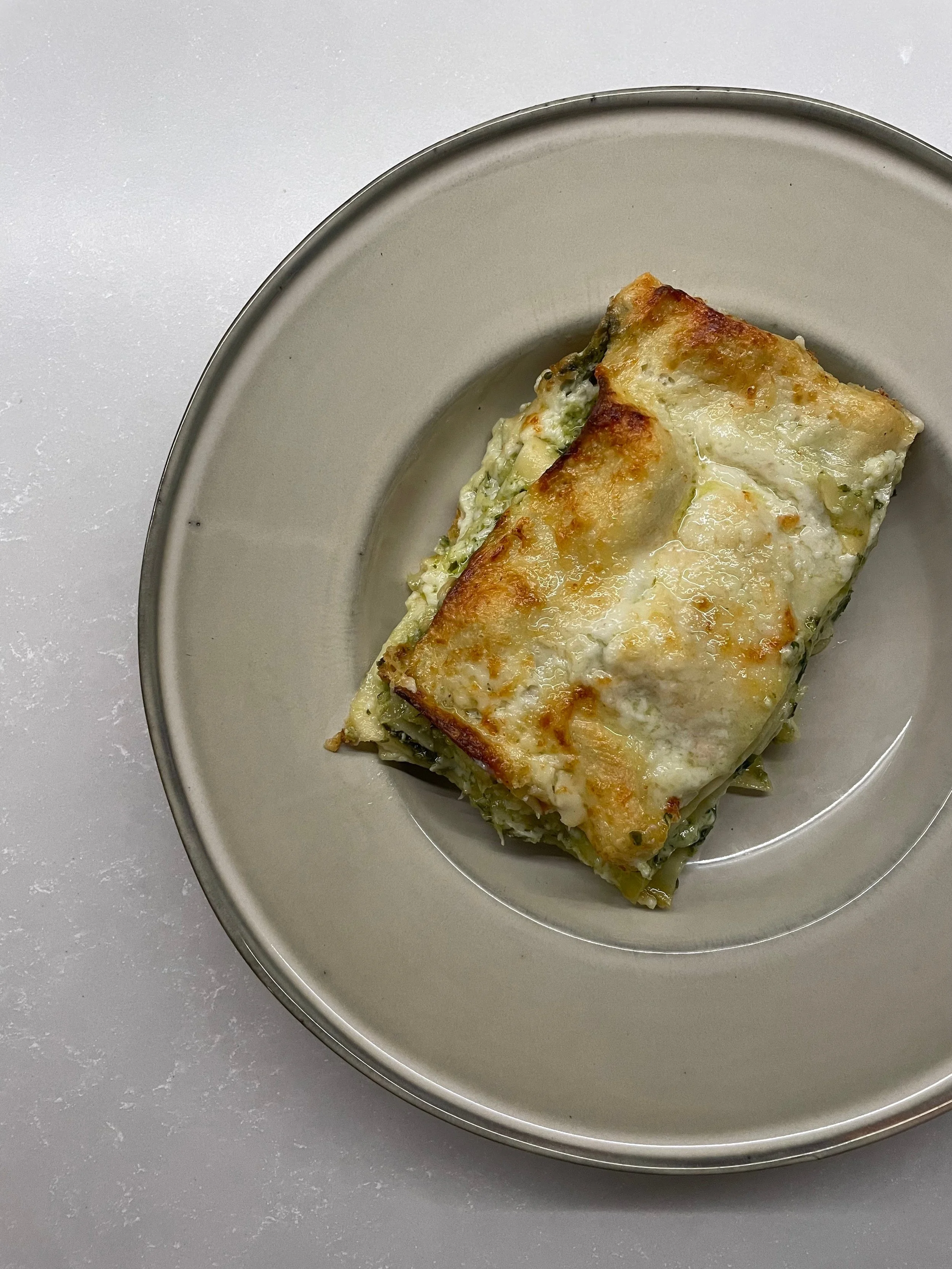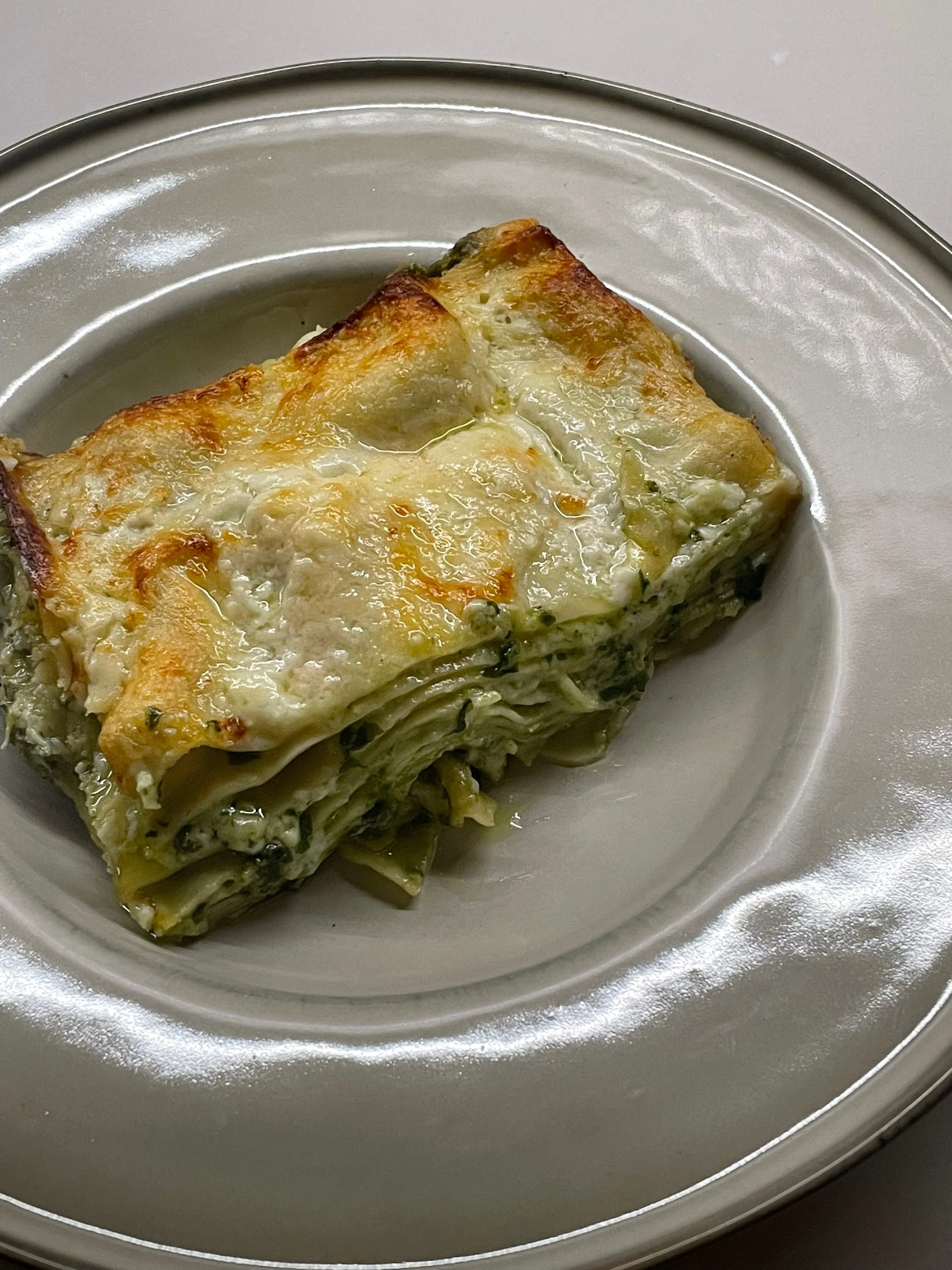 top with another pasta sheet and repeat the process – pasta – pesto – besciamella – until you get to your last sheet.