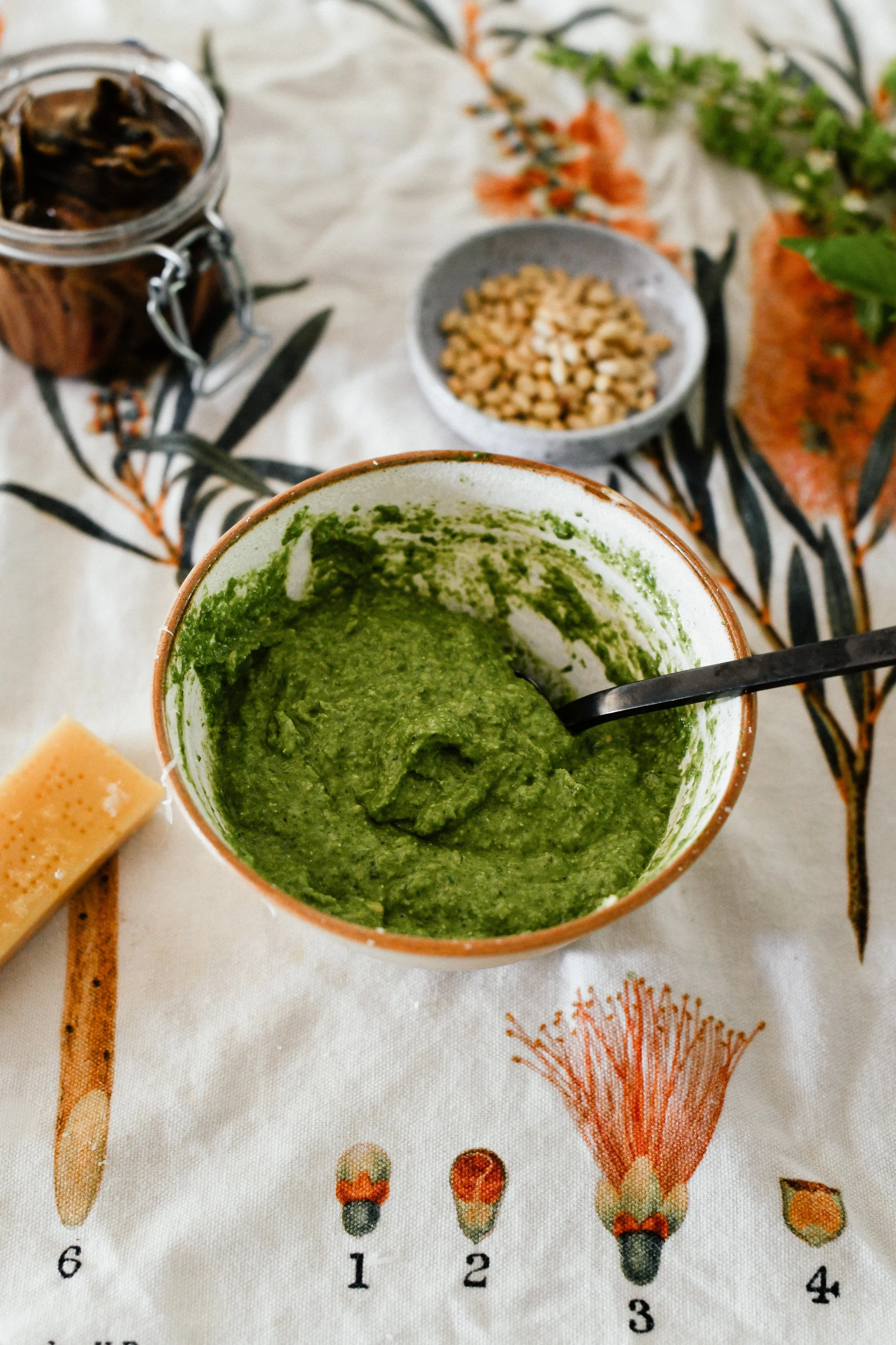 This take on pesto uses a couple of anchovy fillets for a smack of umami and salt that works really well with the lemon profile of sorrel. Whip this up in a matter of minutes and toss it through hot pasta for a delicious dish.