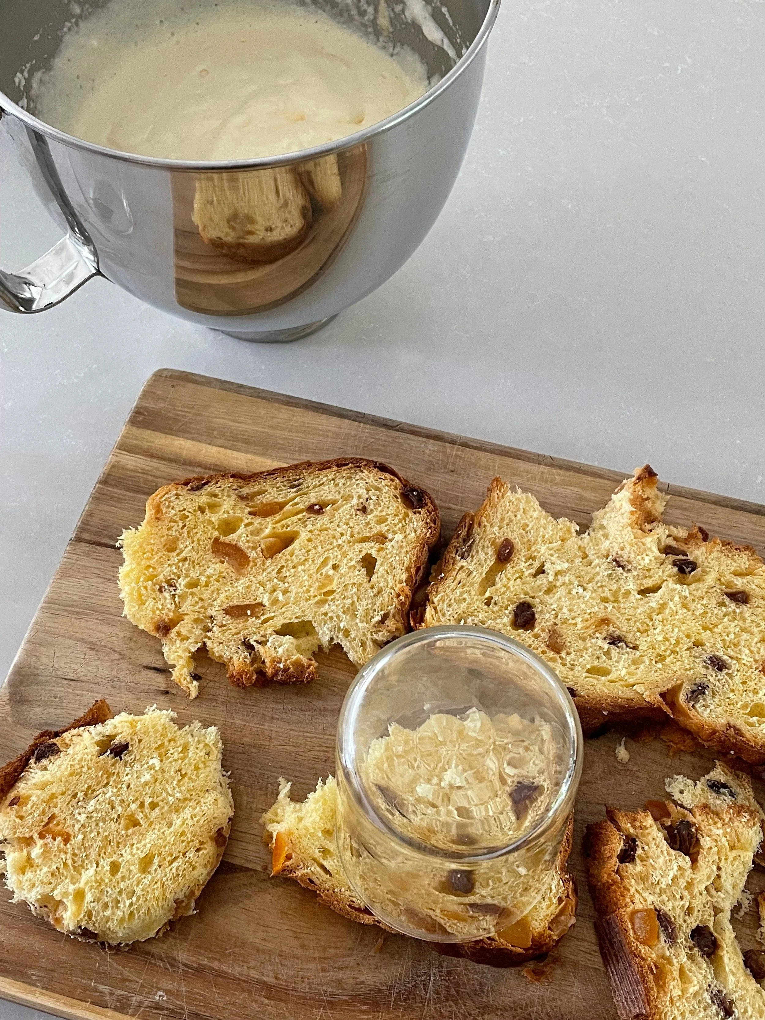 - Pipe a layer of cream and repeat with another slice of panettone, coffee and cream.