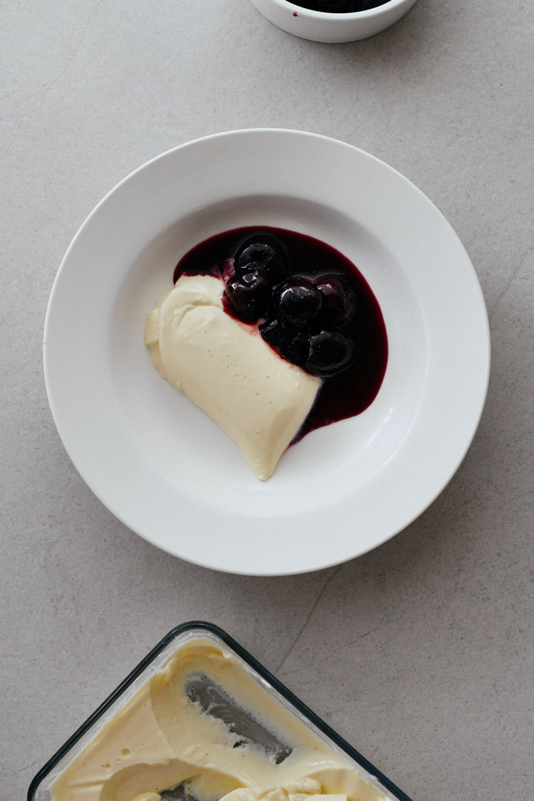 - If you are doing a scooped serve, warm a large spoon in hot water first and carefully scoop and plop the panna cotta down onto a plate, with the spoon side facing up. Please note that this panna cotta recipe is very jiggly and less on the firm jelly side, so it can be a bit tricky to keep it in one scooped piece.