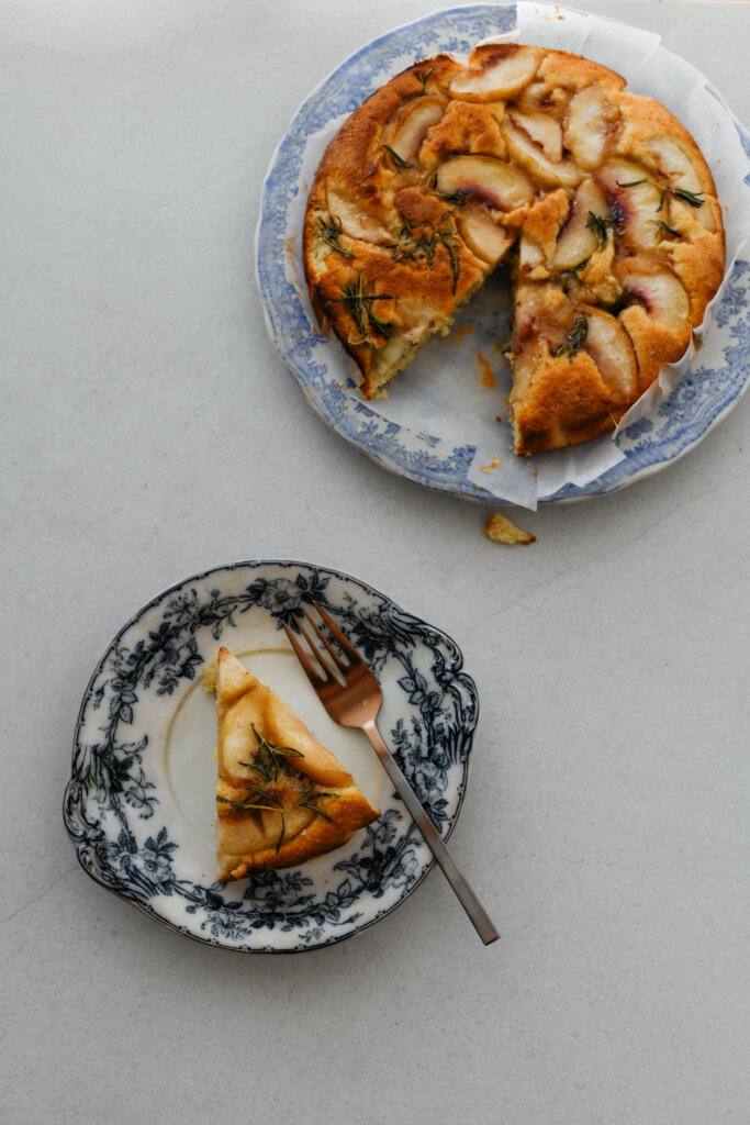 Peach and rosemary cake