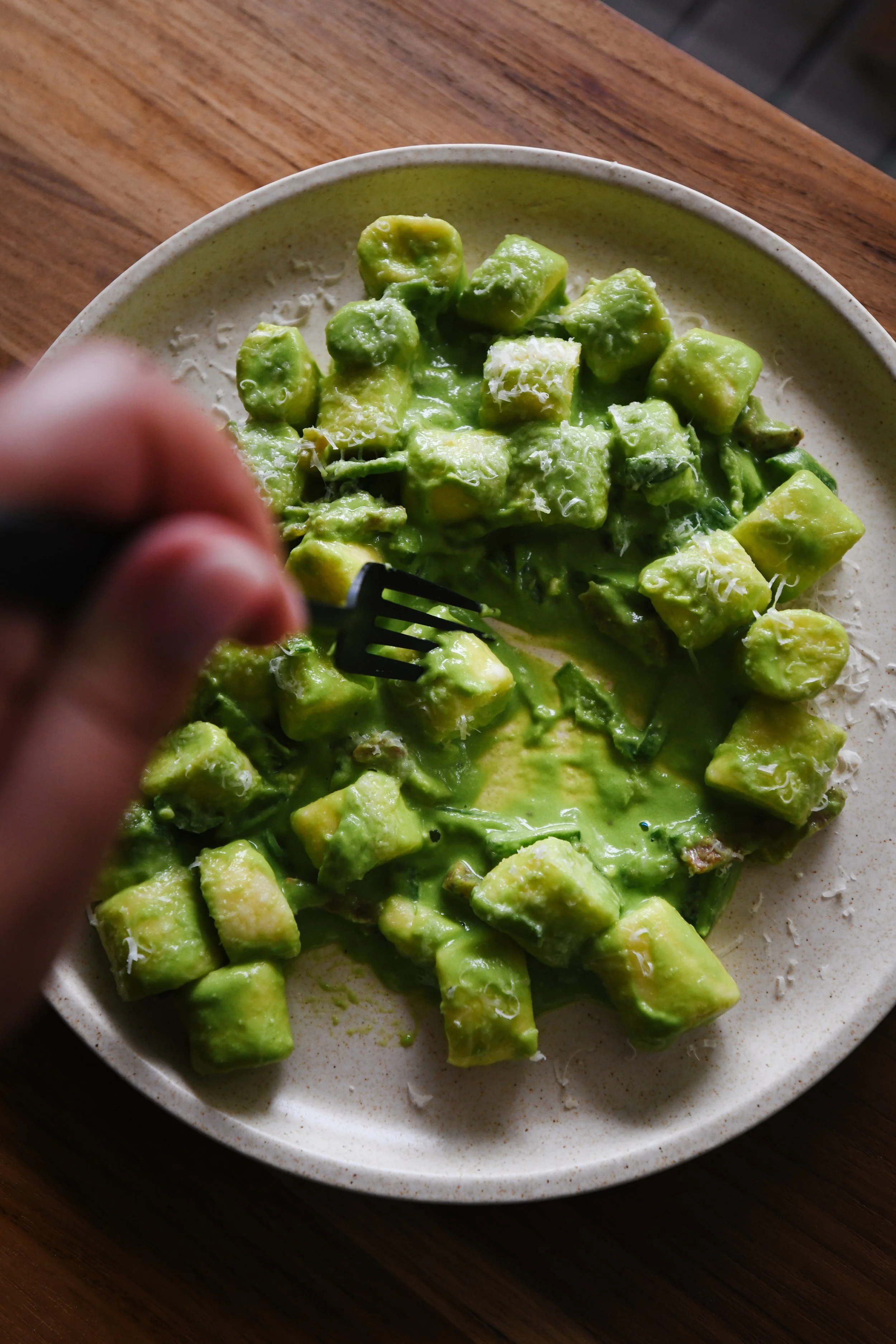 This is where ricotta gnocchi comes in. Quite possibly the quickest dough you can make – far quicker than a regular egg dough, too. You can create the most soft and plump pillows in a short space of time, ready to be tossed in any sauce you throw at it. In the case of today’s recipe, that’s a silky and vibrant green pea sauce. I’m telling you – spring vibes in autumn is the new way to go for us southern hemisphere folk.