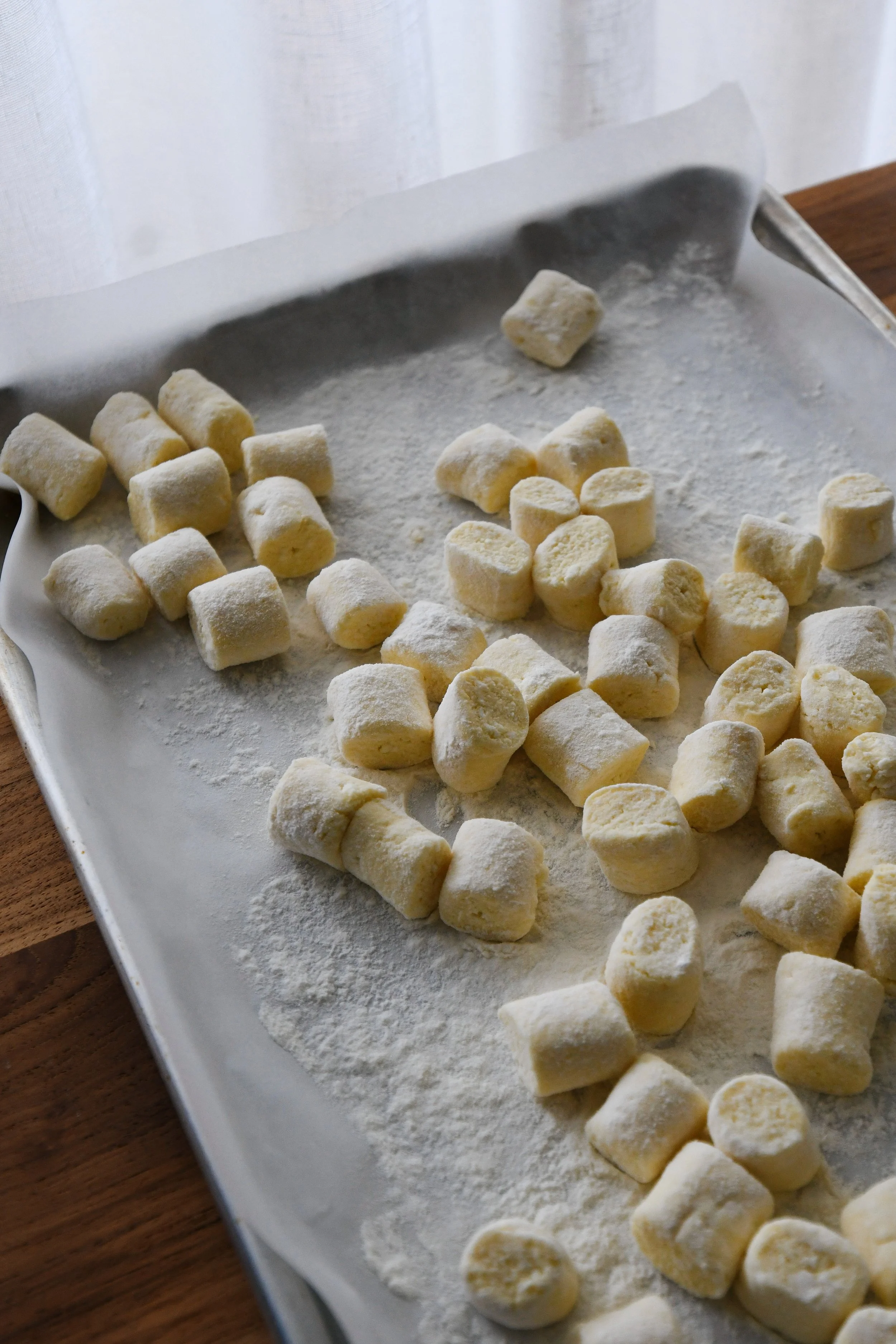 - Dust with flour and set aside on a baking tray dusted with flour until ready to use.