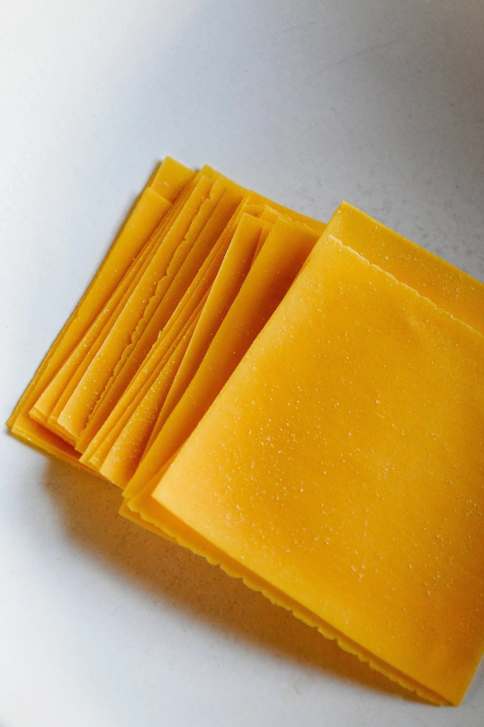 For such a light and silky pasta, a luxurious egg yolk dough is a must! This dough is a little harder to work with given the absence of egg whites, so keep a spray bottle filled with water on hand to use as needed during the kneading process.