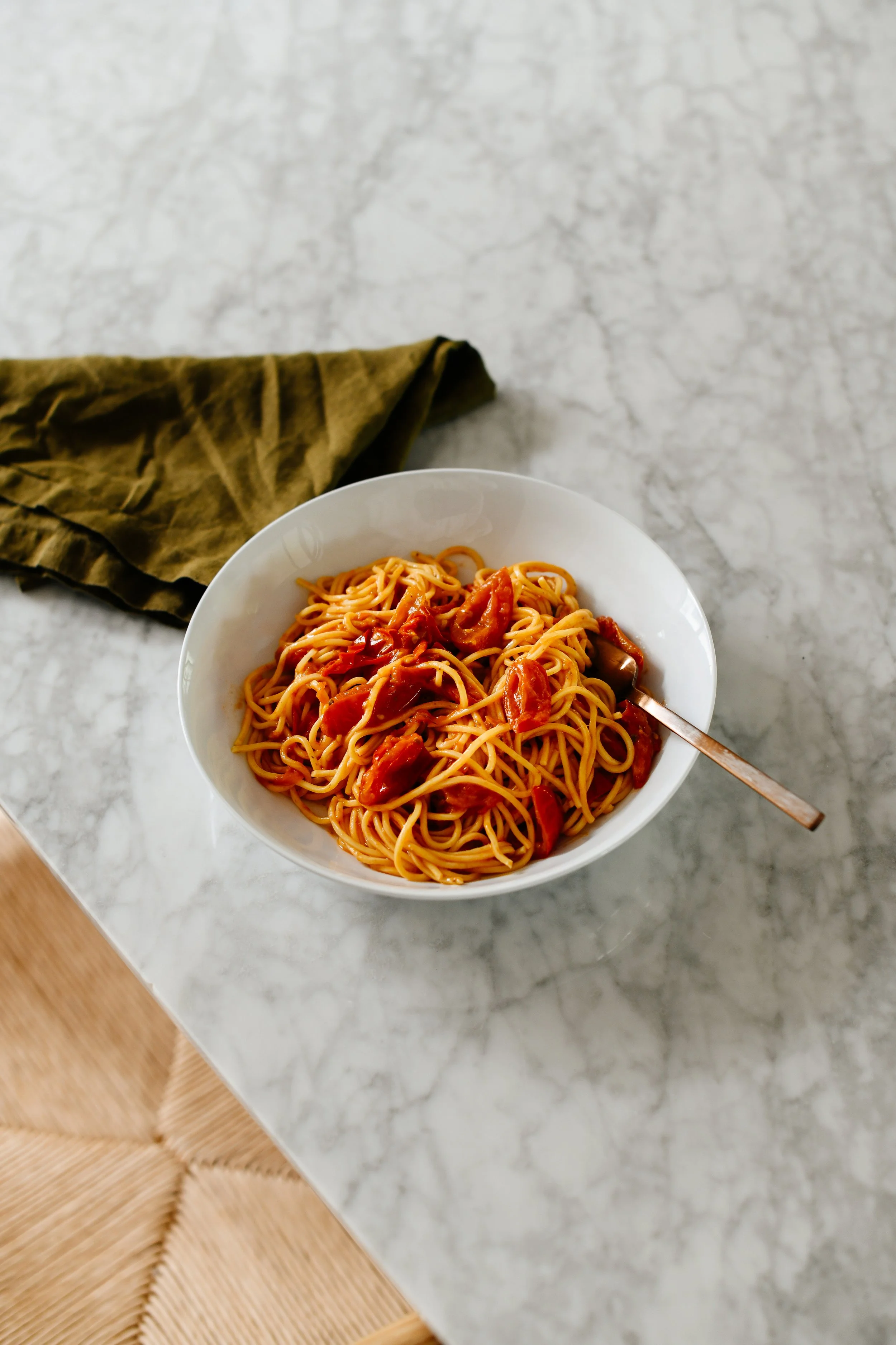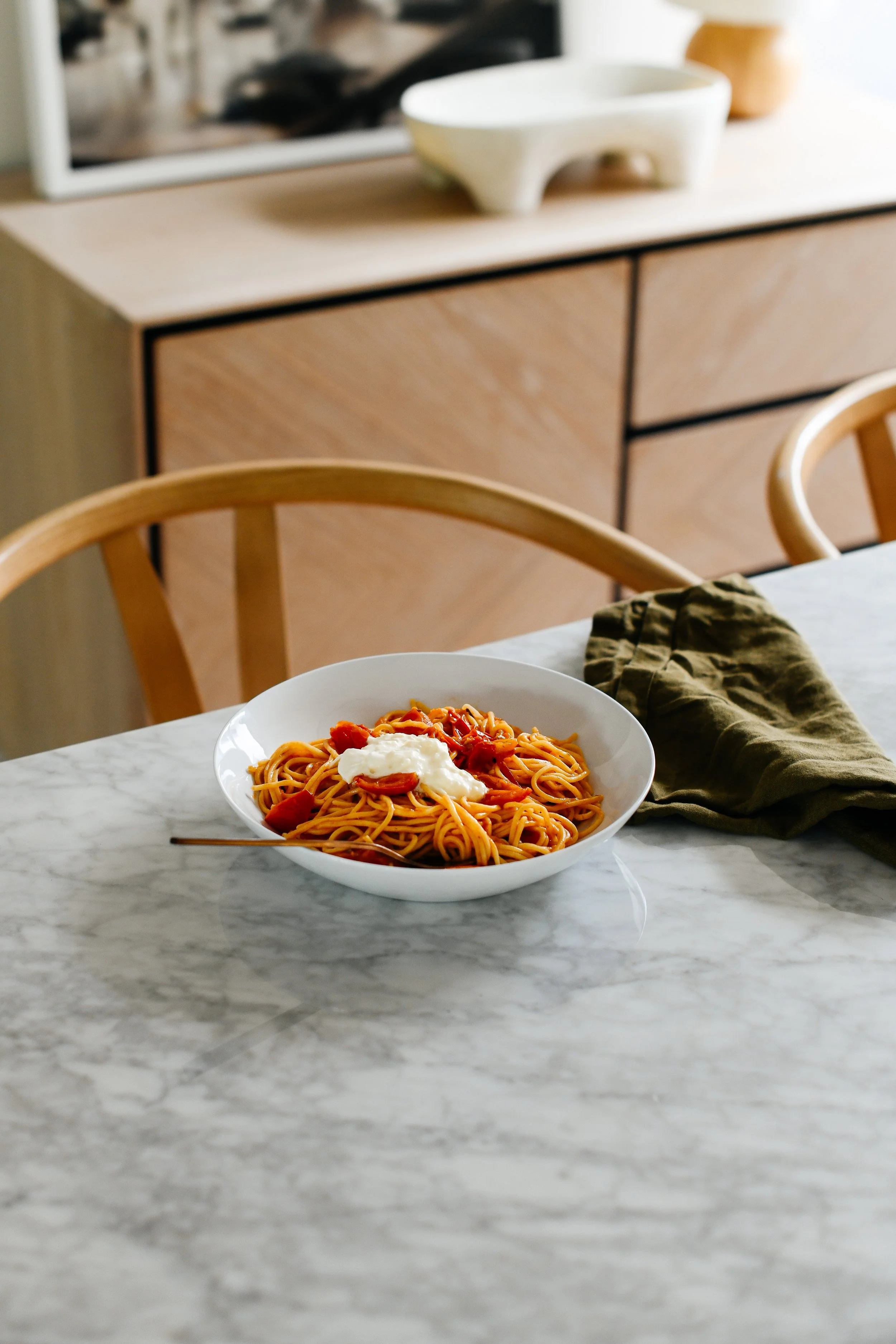 Butter, anchovy and tomatoes. That’s all it takes to make this obscenely delicious sauce. I call it my late night pasta – it just hits different late night when hunger strikes. Anchovy brings salty umami flavour and is absolutely key in this dish. You can of course omit them from the recipe if anchovy isn’t your thing, but they do really add a little something to this sauce.