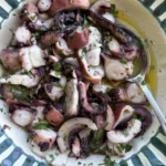 Marinated octopus, the perfect cold meze dish for octopus lovers! A great way to prepare an entire octopus, or just to use up some of the thinner ends and head leftover from grilling.