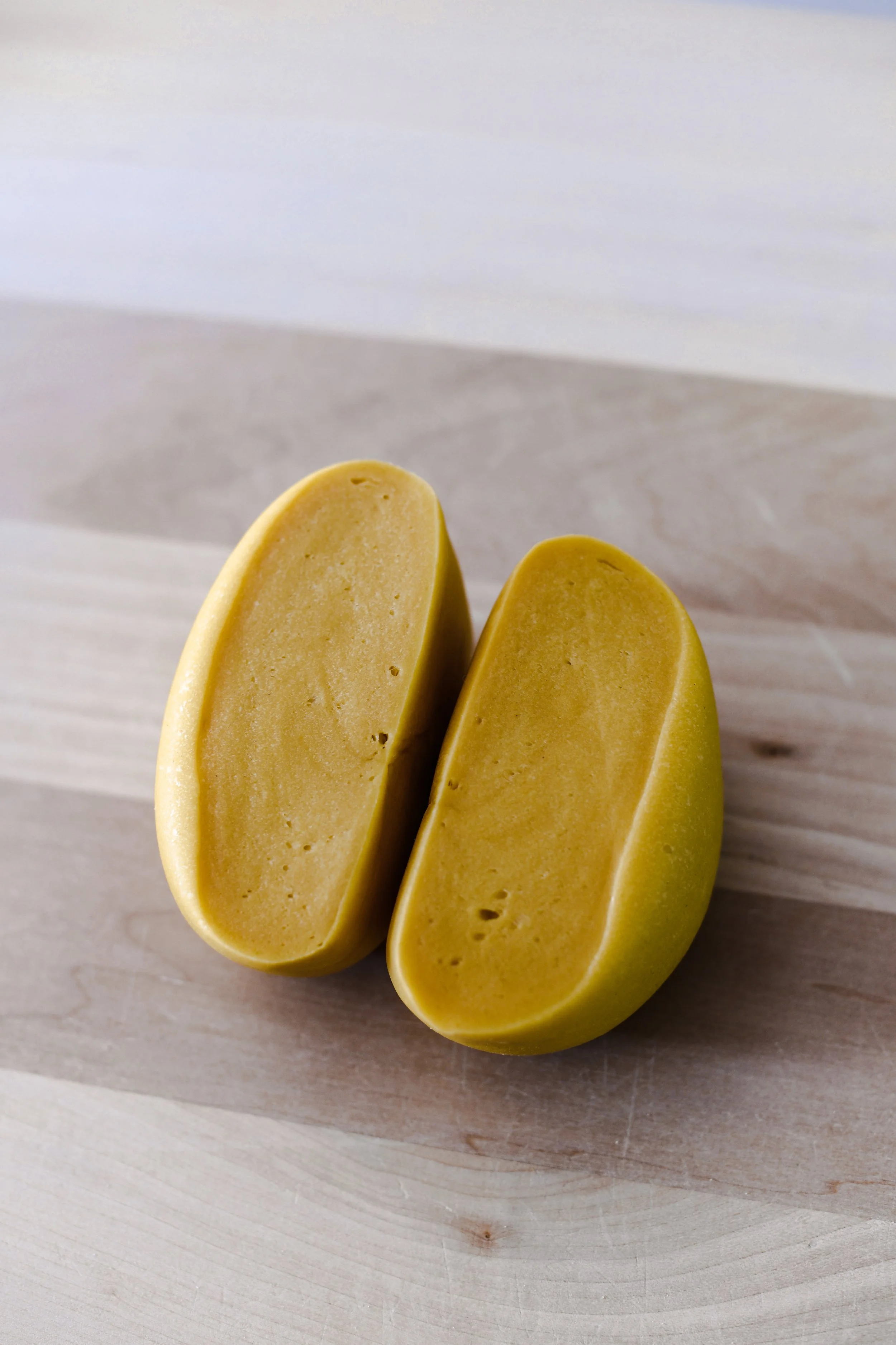 6. Make a small dimple into the middle of the filling side of the semi-circle, then take the two bottom corner edges, bring them together so they just overlap, and press to seal