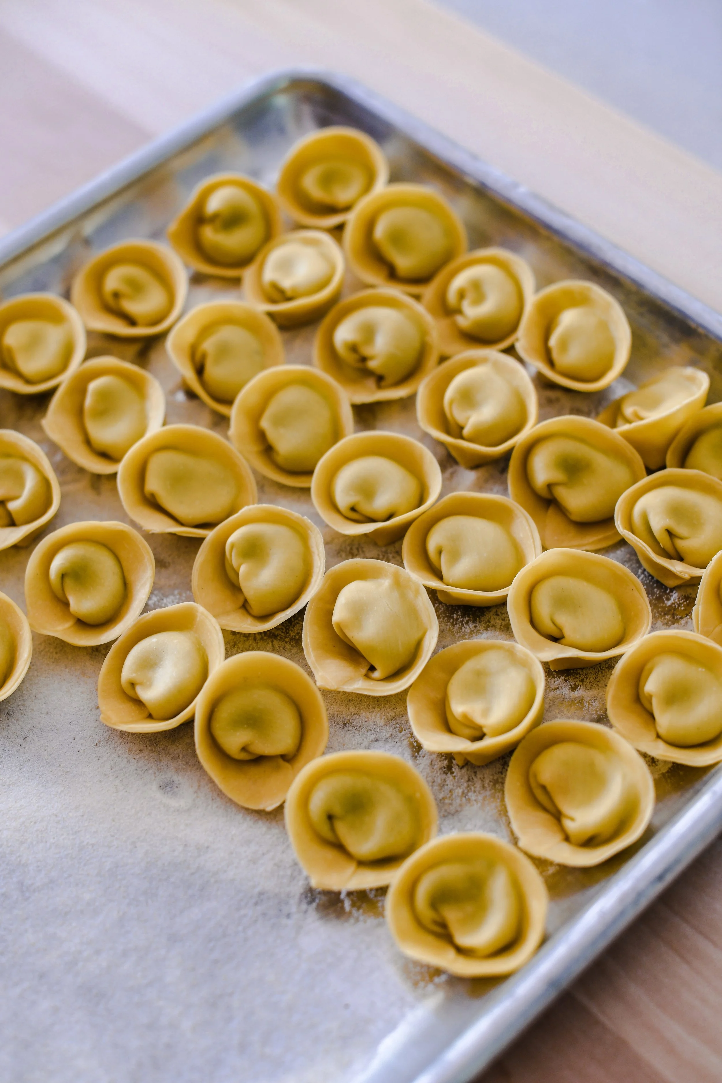 8. Place each cappelletti on a baking tray lined with a clean tea towel, or dusted with fine semolina